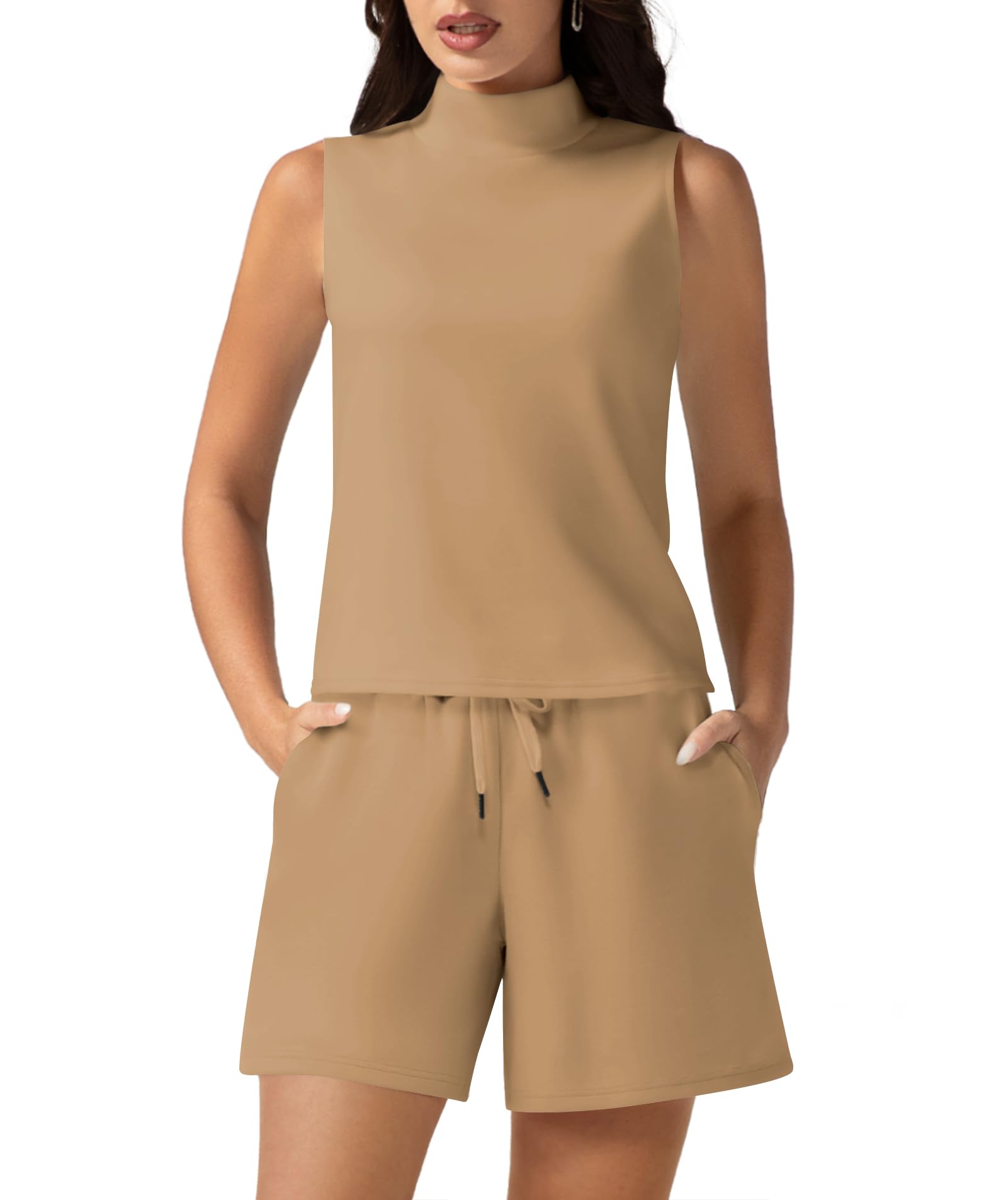 Casly Lamiit Women's Summer 2 Piece Outfits Mock Neck Tank Top High Waisted Shorts Lounge Sets 2025 Fashion Tracksuit