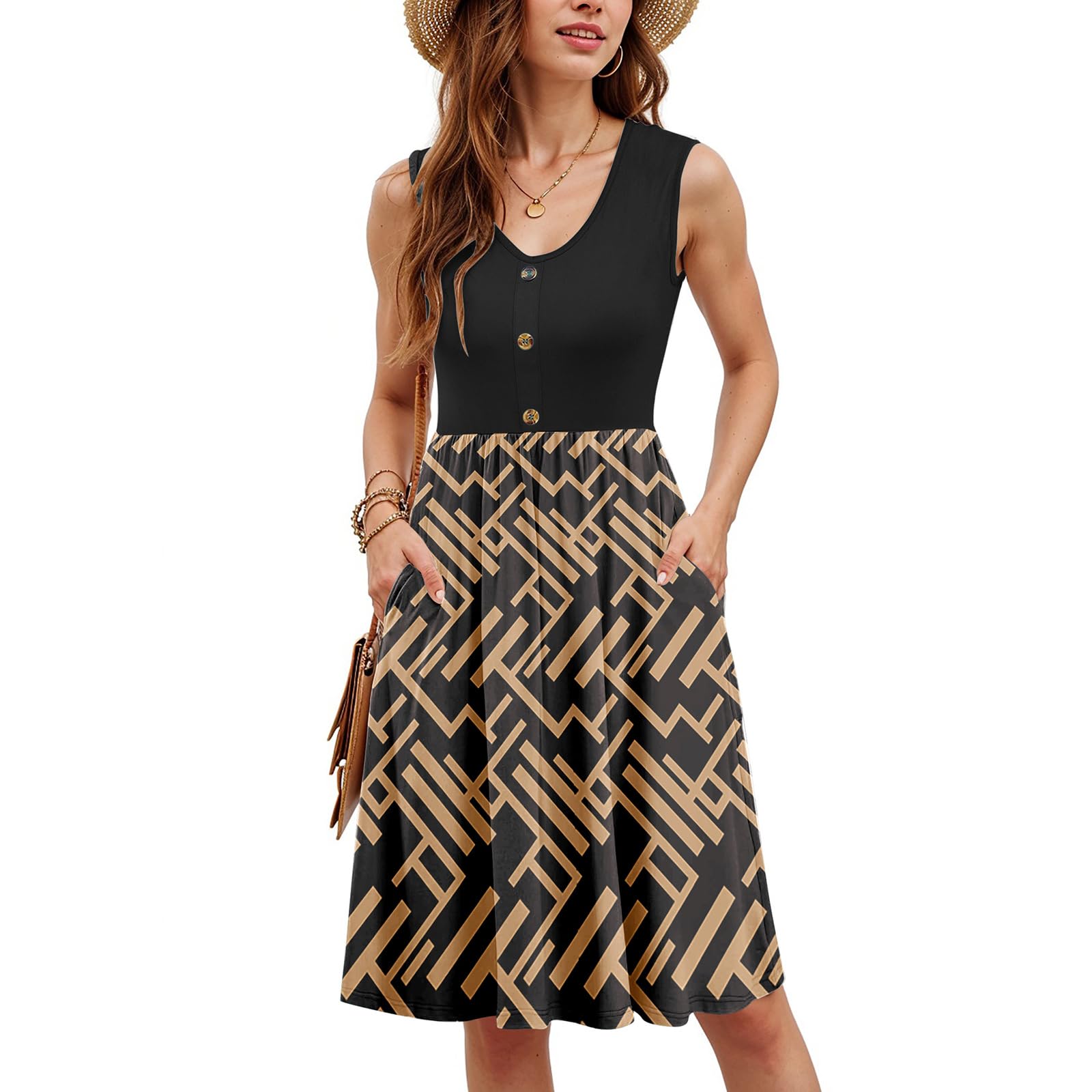 【Material】: Floral sun dresses for women 2025 vacation made from high quality fabric, provide you cool and breathable wearing experience in hot summer day. 【Features】: Sleeveless casual dresses for women suit for Daily wear,beach,party,Home,Office, Vacation,School,Shopping, Travel. Suitable