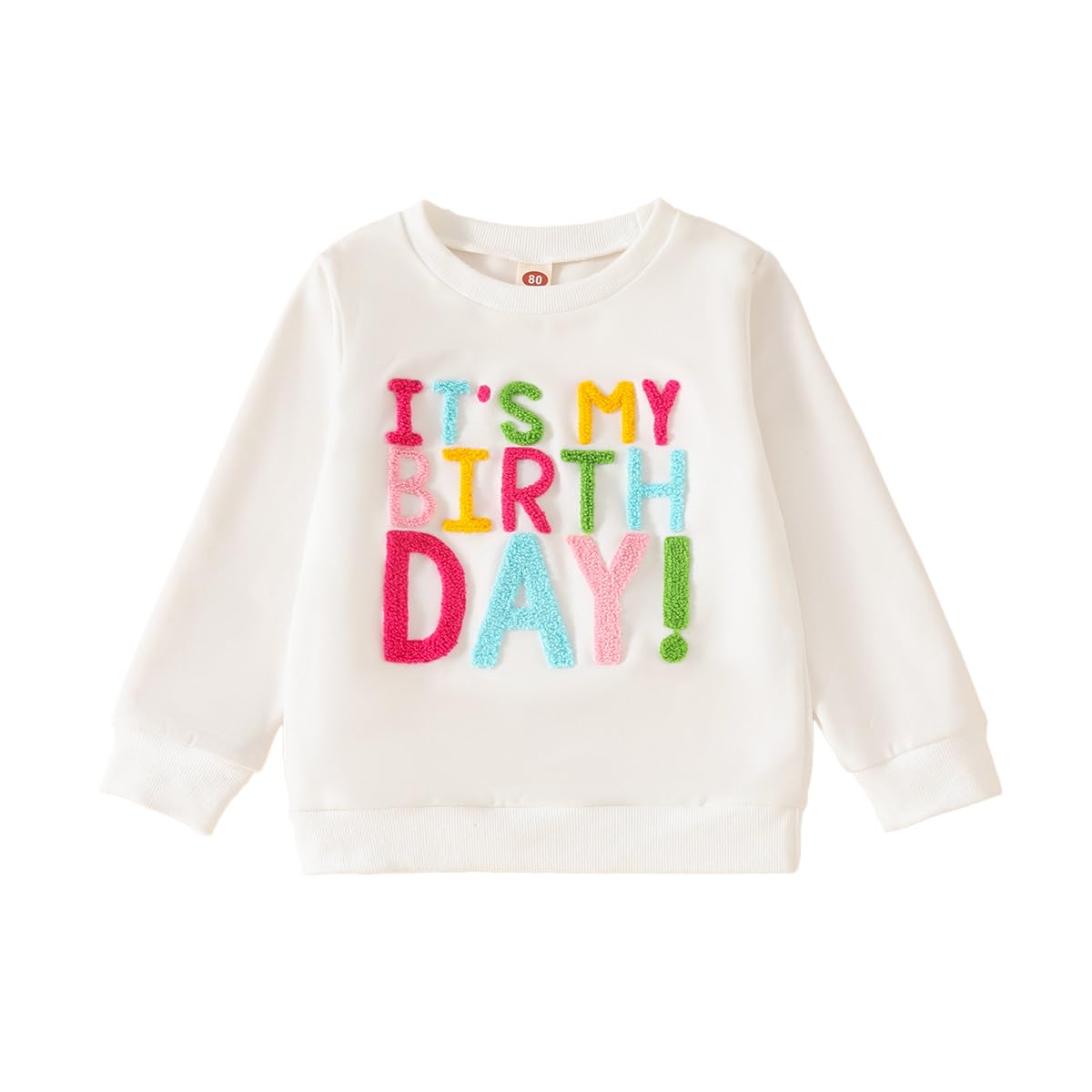 DOSYZTO Toddler Baby Fall Outfit Birthday Girl Crewneck Sweatshirt Tops Little Princess Birthday Shirt Kids Spring Clothes