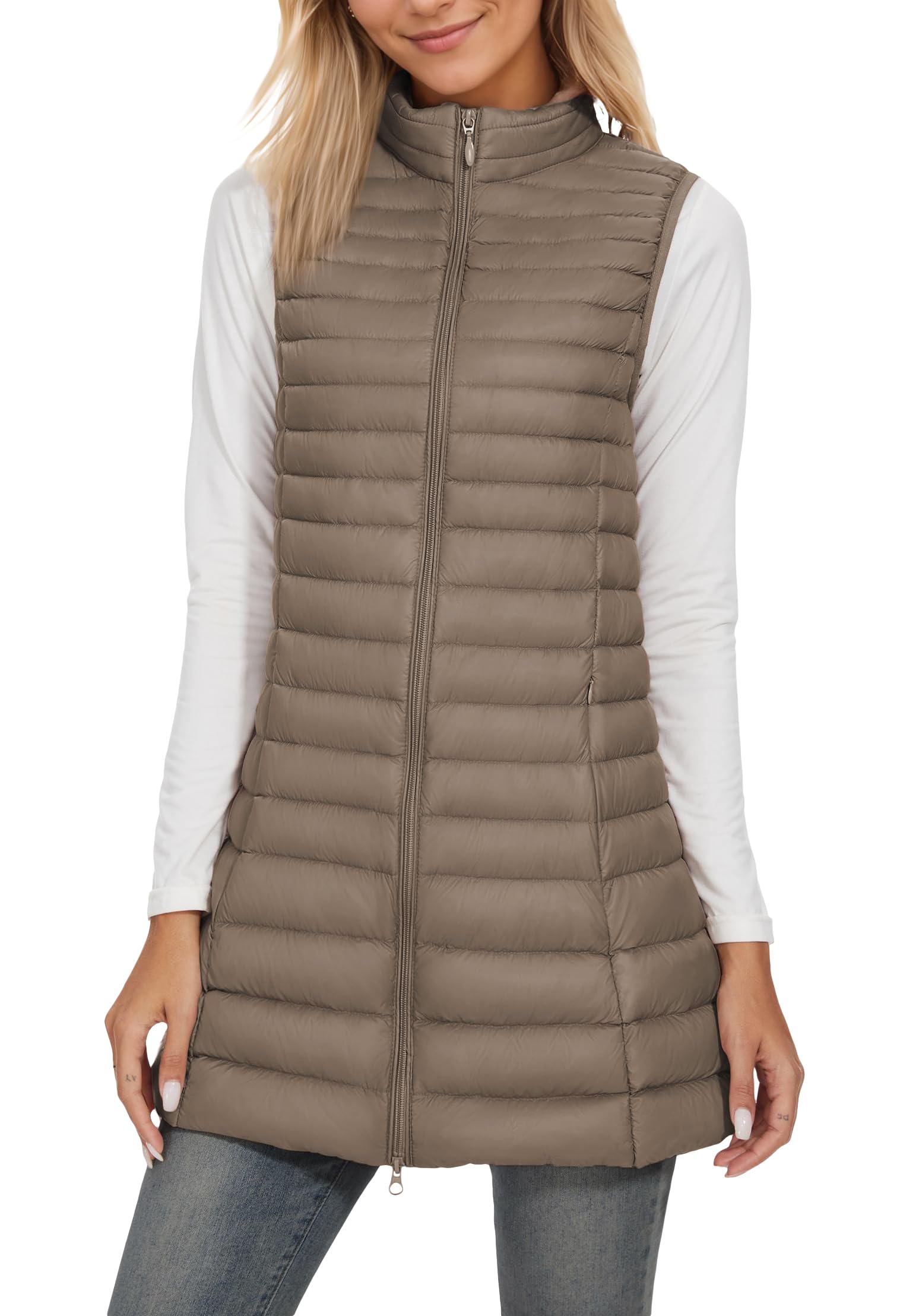 ELFJOY Women's Mid Long Down Vest Lightweight Puffer Vest Coat Jacket Stylish Windbreaker