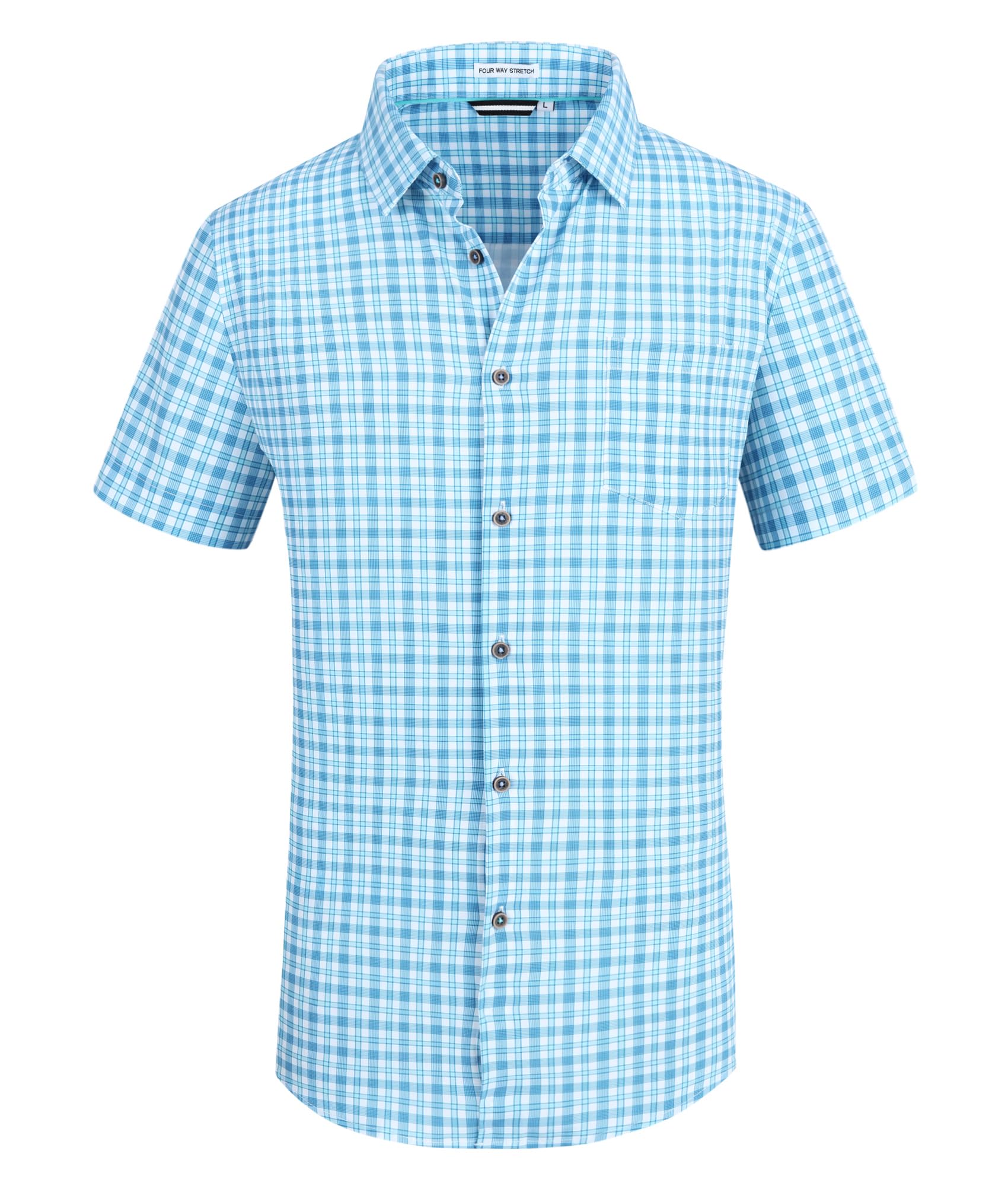 Alex Vando Mens Button Down Shirts Wrinkle Free 4-Way Stretch Short Sleeve Business Casual Shirt
