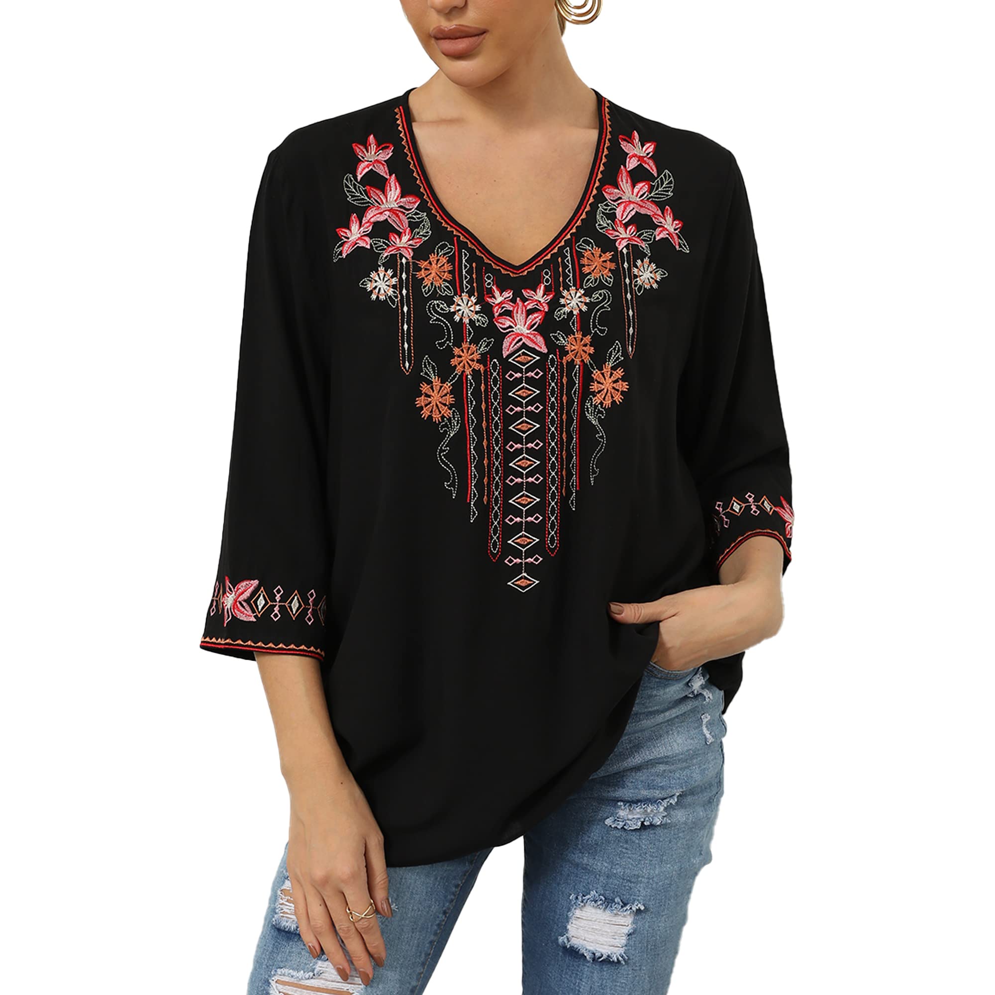 Comfortable Rayon Material -- This floral embroidered tops for women made of soft, breathable, comfy rayon fabric, which is smooth to skin and cool wearing experience in hot summer days. 【 Real Embroidered 】-- The fashion/vintage flower and butterfly pattern are embroidered on the Boho tops, unl
