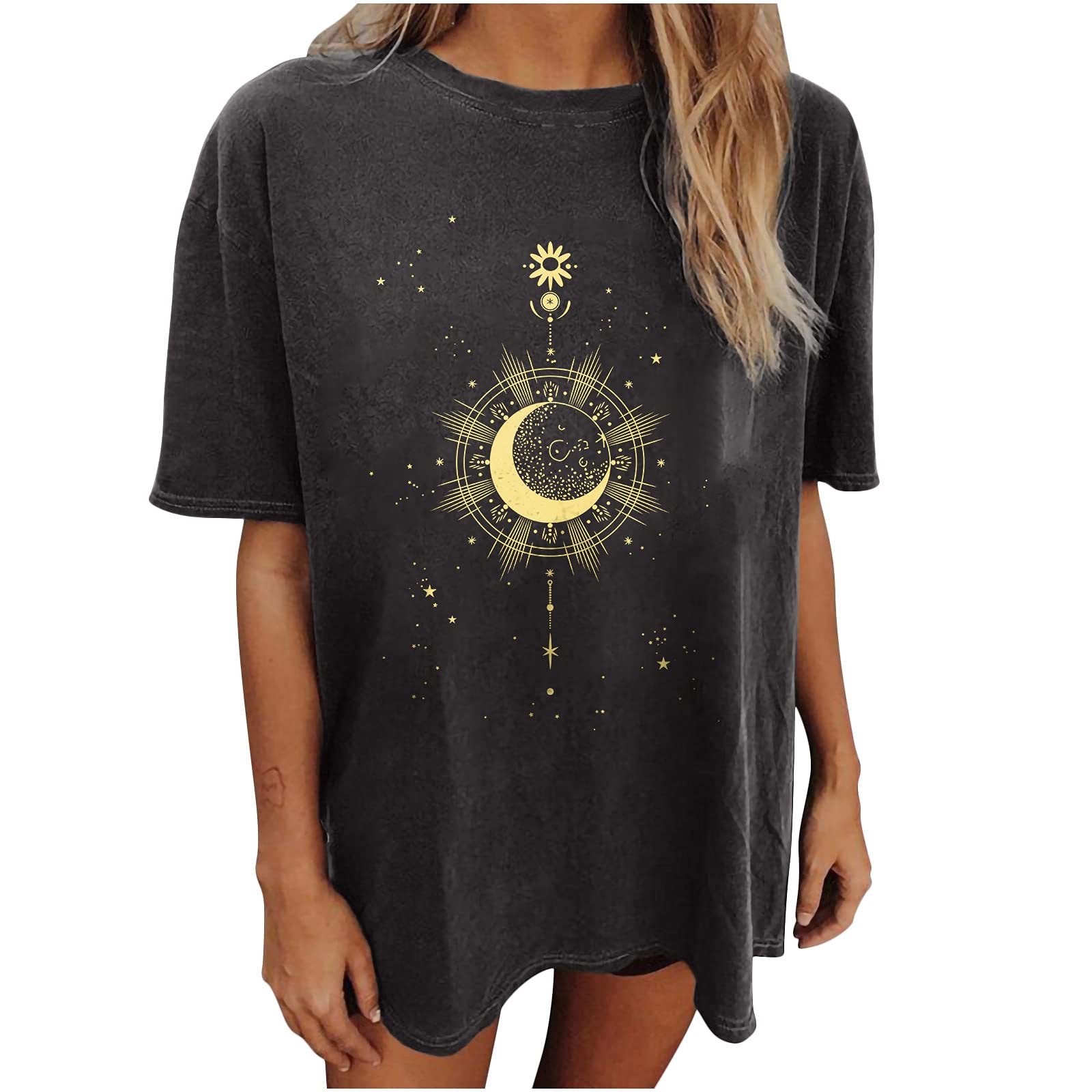 Summer Y2k Tops for Womens, Casual Vintage Short Sleeve T-Shirt, Girls Oversize Loose Round Neck Elastic Tee