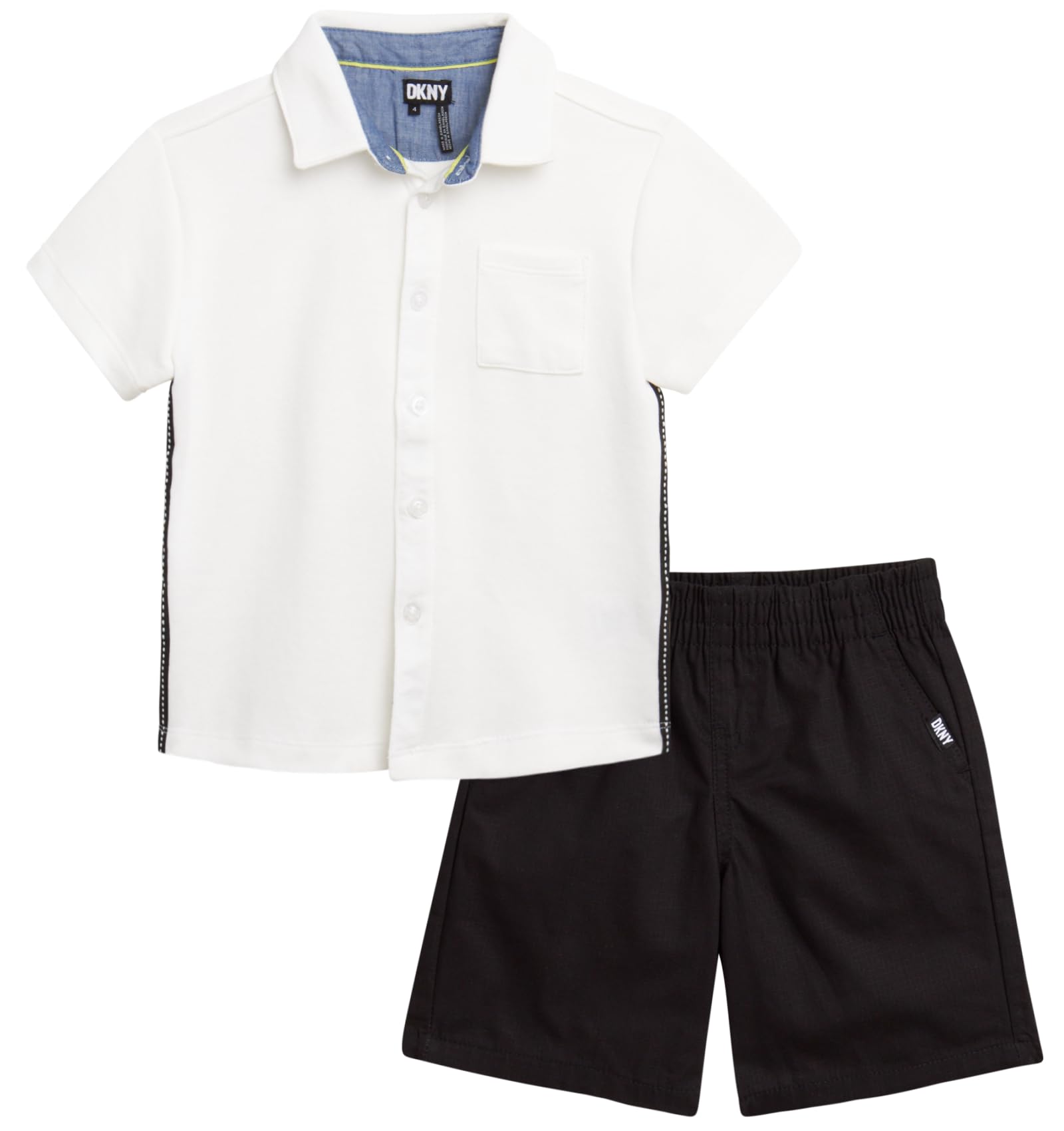 High Quality Fabric For Baby Boys Summer Outfits And Toddler Shorts : Crafted with attention to detail, this DKNY 2 piece set includes a short sleeve button down boys shirt and matching cargo shorts that offer comfort and durability for active days. Ideal for baby boy clothes and toddler boy clothes