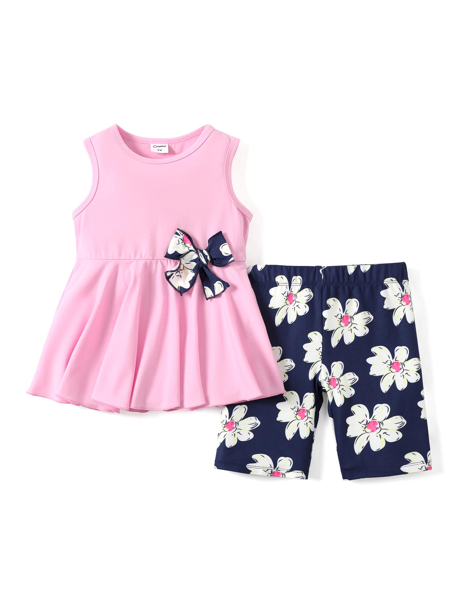 PATPAT Girls Summer 2 Piece Outfits 4-12Y Butterfly Bow Sleeveless Tunic Tops and Floral Print Shorts Cute Clothes