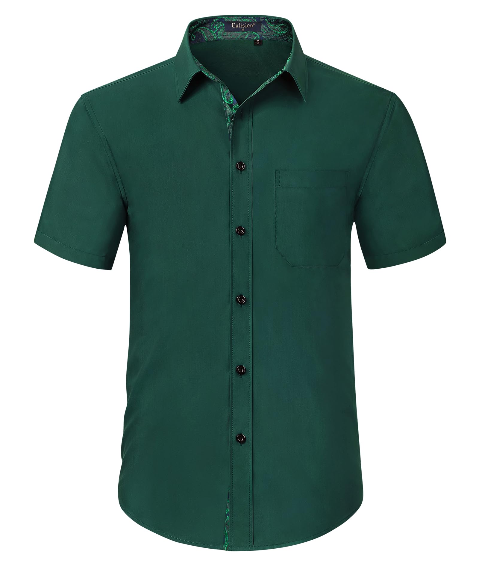 Enlision Mens Short Sleeve Dress Shirts Solid Color Regular Fit Shirt Casual Button Down Business Shirts with Pocket