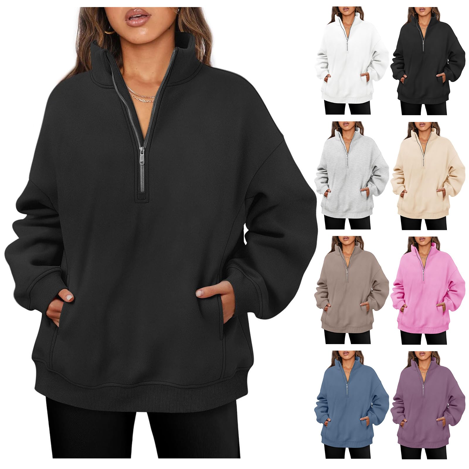 Tednrk Womens Oversized Half Zip Sweatshirt Casual Loose Quarter Zip Long Sleeve Pullover Tops Fall Outfits 2024