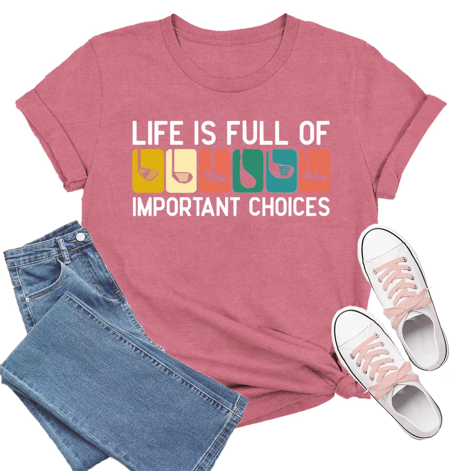 TIEEI Golf-Themed Shirts for Women Life is Full of Important Choices T-Shirt Vintage Golf Clubs Tee Golfer Tops