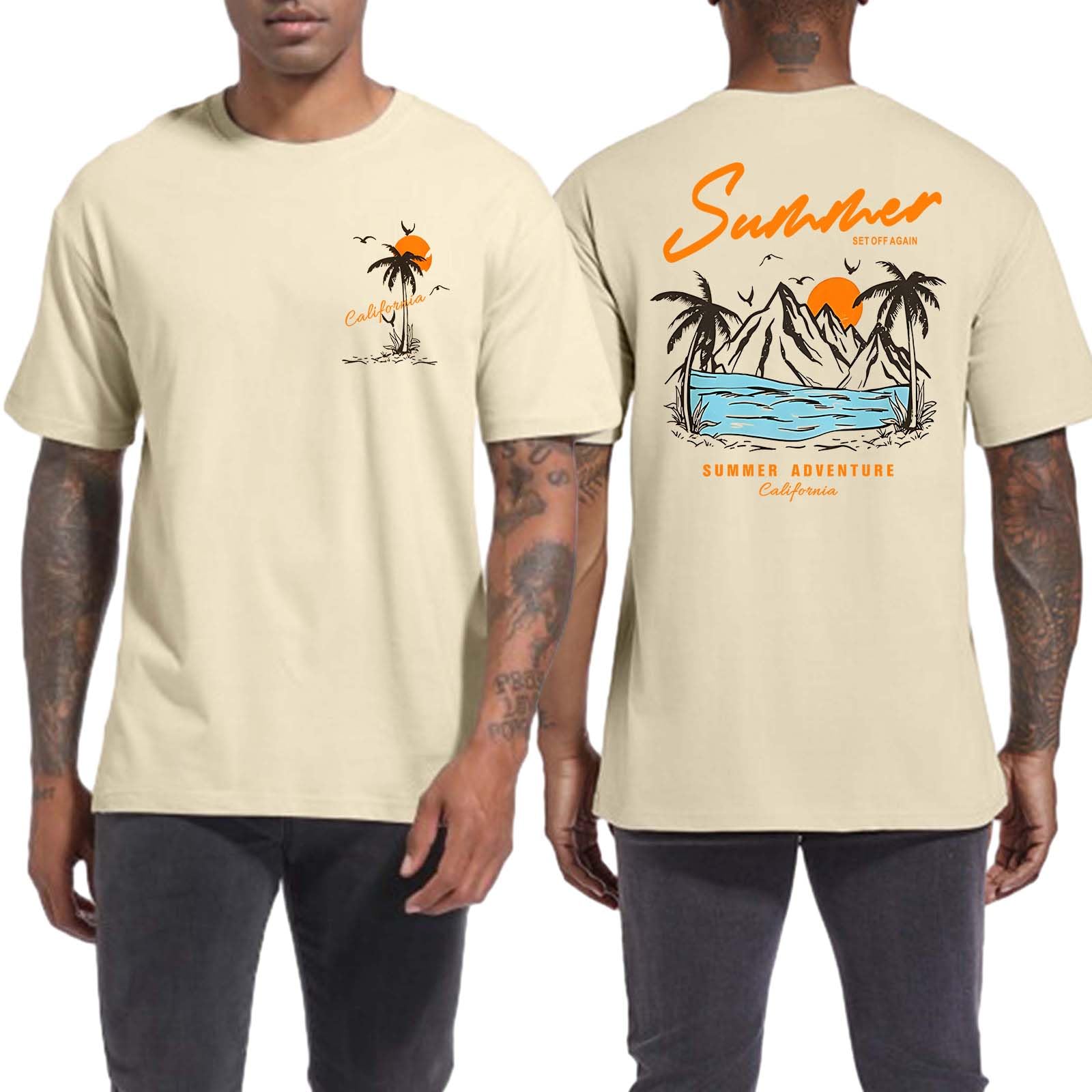 Premium Fabric: Mens T Shirts Casual Shirts Are Made Of 100 Percent Cotton Fabric, Soft And Comfortable Feel, Slightly Elastic, Lightweight, Moisture Wicking, Breathable, Can Absorb Heat And Bring Coolness Palm Tree Shirt: Sunset T-Shirt Is Very Suitable For Beach. In This Shirt, You Can Go To Beach