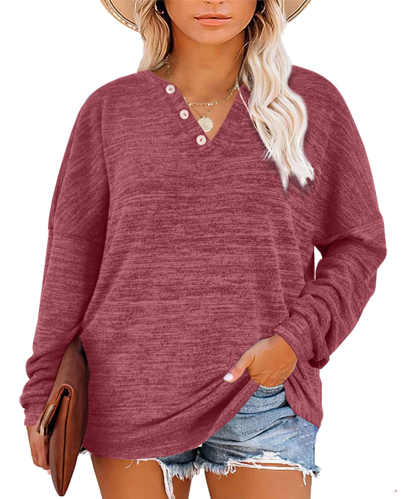 Gloria&Sarah Womens Plus Size Tops Long Sleeve Henley Shirts Fall Fashion Oversized Sweatshirt Tunic Sweaters L-4XL