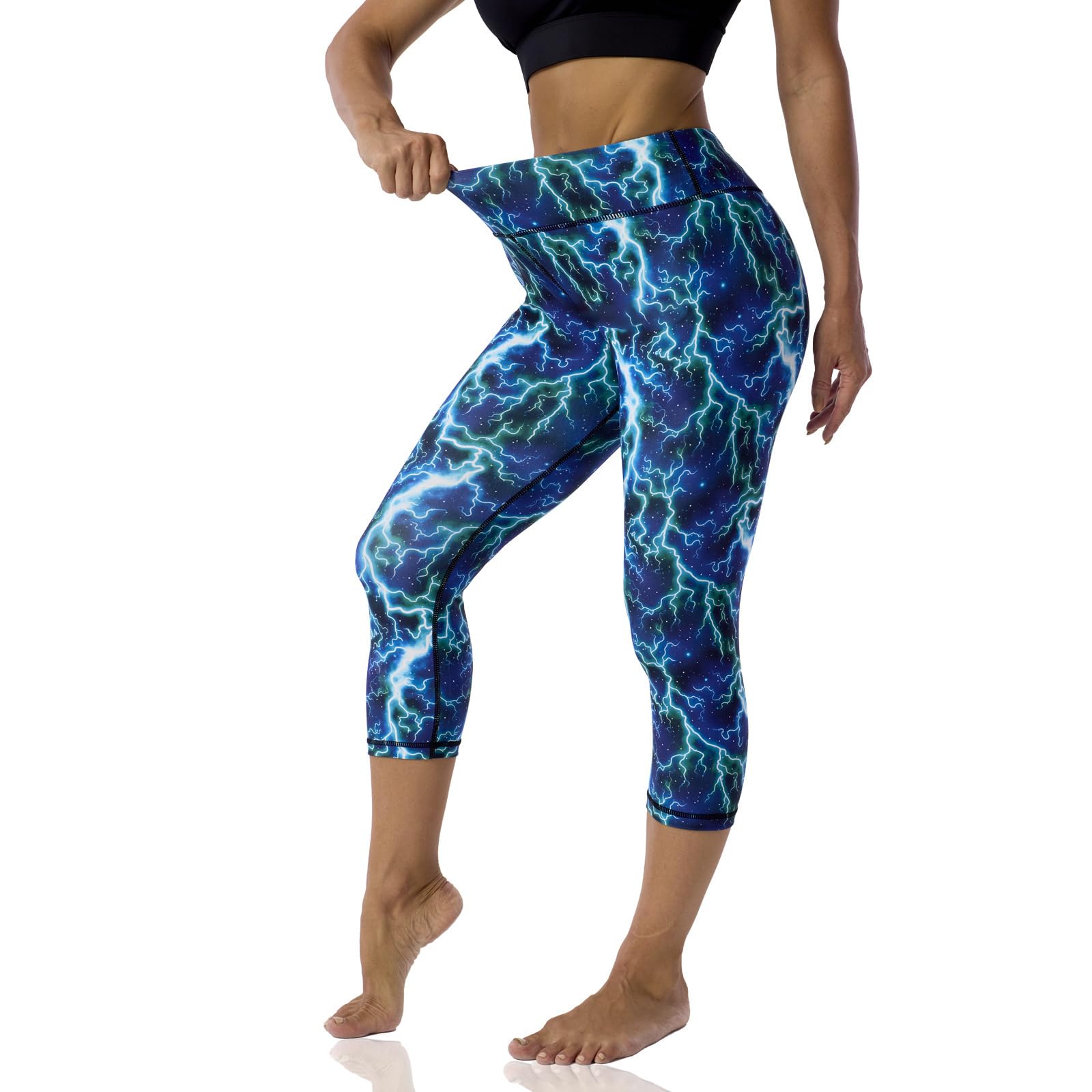 【High-Performance Fabric】: Thick fabric 280gsm (85% polyester, 15% Spandex), Non see-through, Buttery soft, Anti-pilling, Moisture-Wicking, Breathable, and Ventilated. 【Tummy Control & Wide Waistband】: Tummy control Capri leggings tighten your belly entirely, Don't worry about do squats and