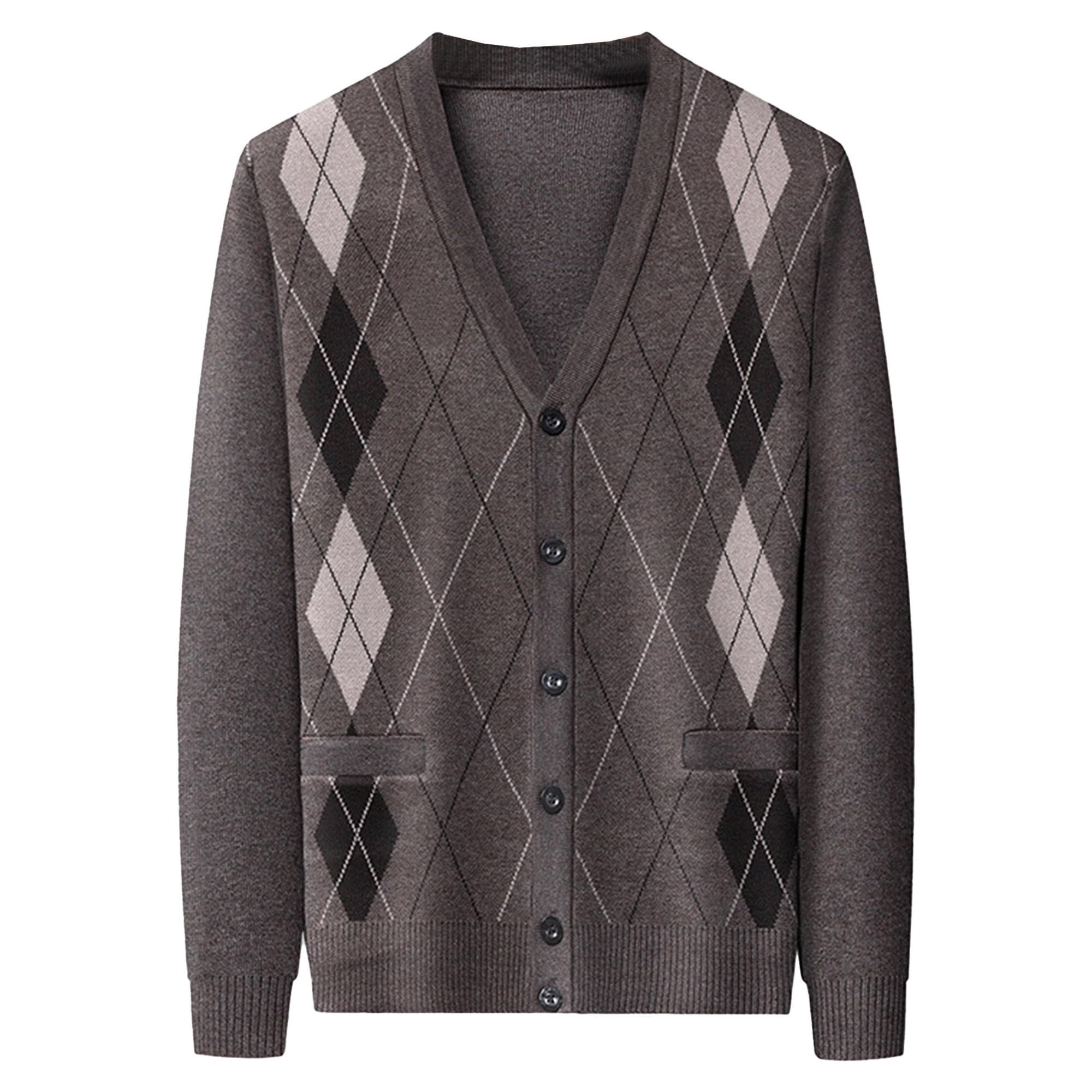 SWJGLITTR Men's Casual Argyle Cardigan Sweaters Button Up Wool Blend Jacket V Neck Soft Knitted Plaid Pockets Sweaters