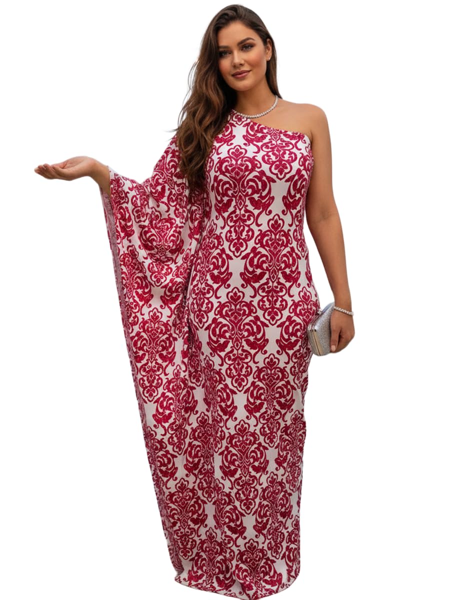 Beautiful plus sized maxi dresses for women; full figure Red and White maxi dress for the larger ladies with curves; curvy flattering gowns; womans slimming stretchy clothing; big size comfy loose low wrinkle free clothes; apparel garments Special occasion maxi dresses; one shoulder beach wedding pa