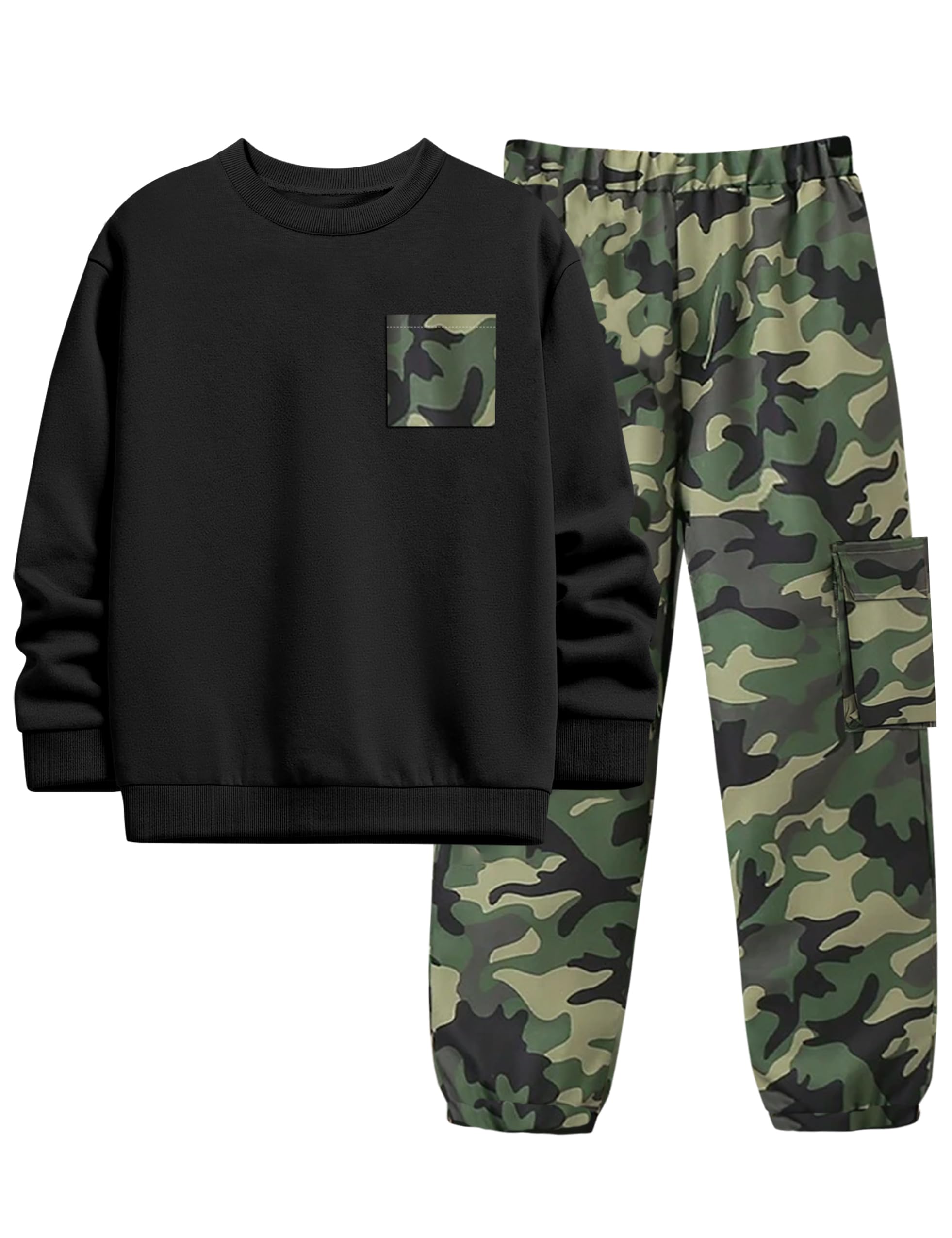 WIQI Boys Clothes 2 Piece Long Sleeve Pullover Sweatshirt and Camouflage Sweatpants Fall Winter Outfits Set 6-14Y