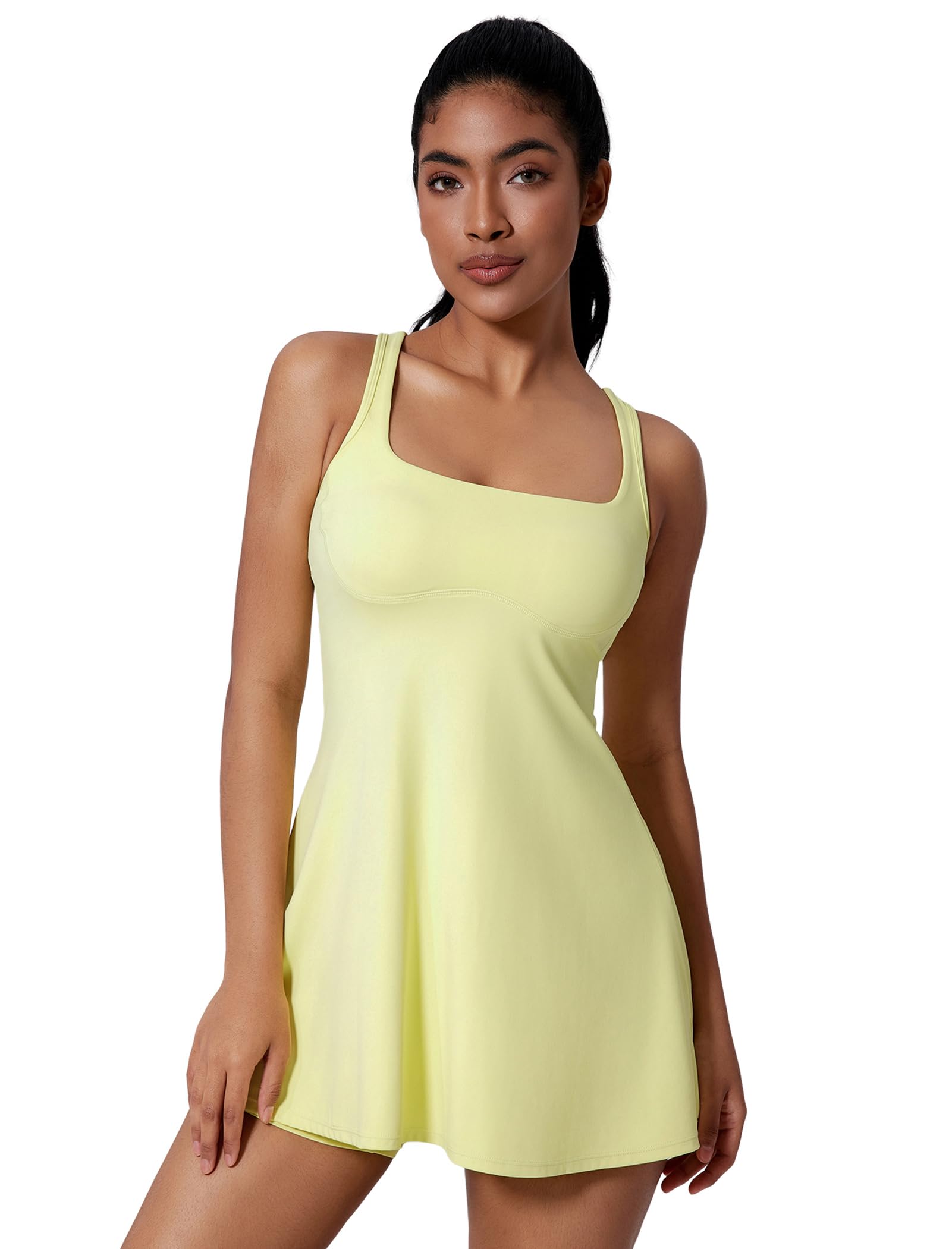 ABEHIK Tennis Dresses for Women with Shorts Bra Summer 2 Piece Sets Outfits Square Neck Golf Athletic Dress with Pockets