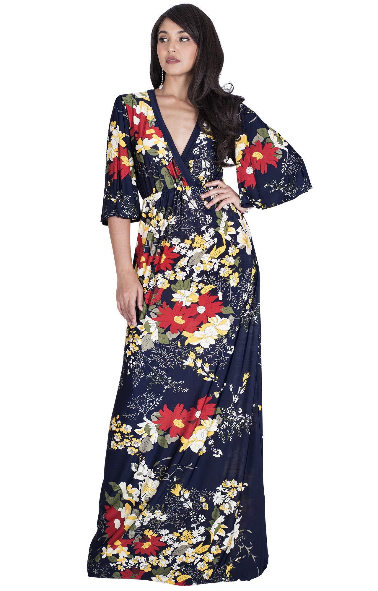 KOH KOH Womens 2026 Long 3/4 Sleeve V Neck Bohemian Print Flowy Maxi Dress Gown
