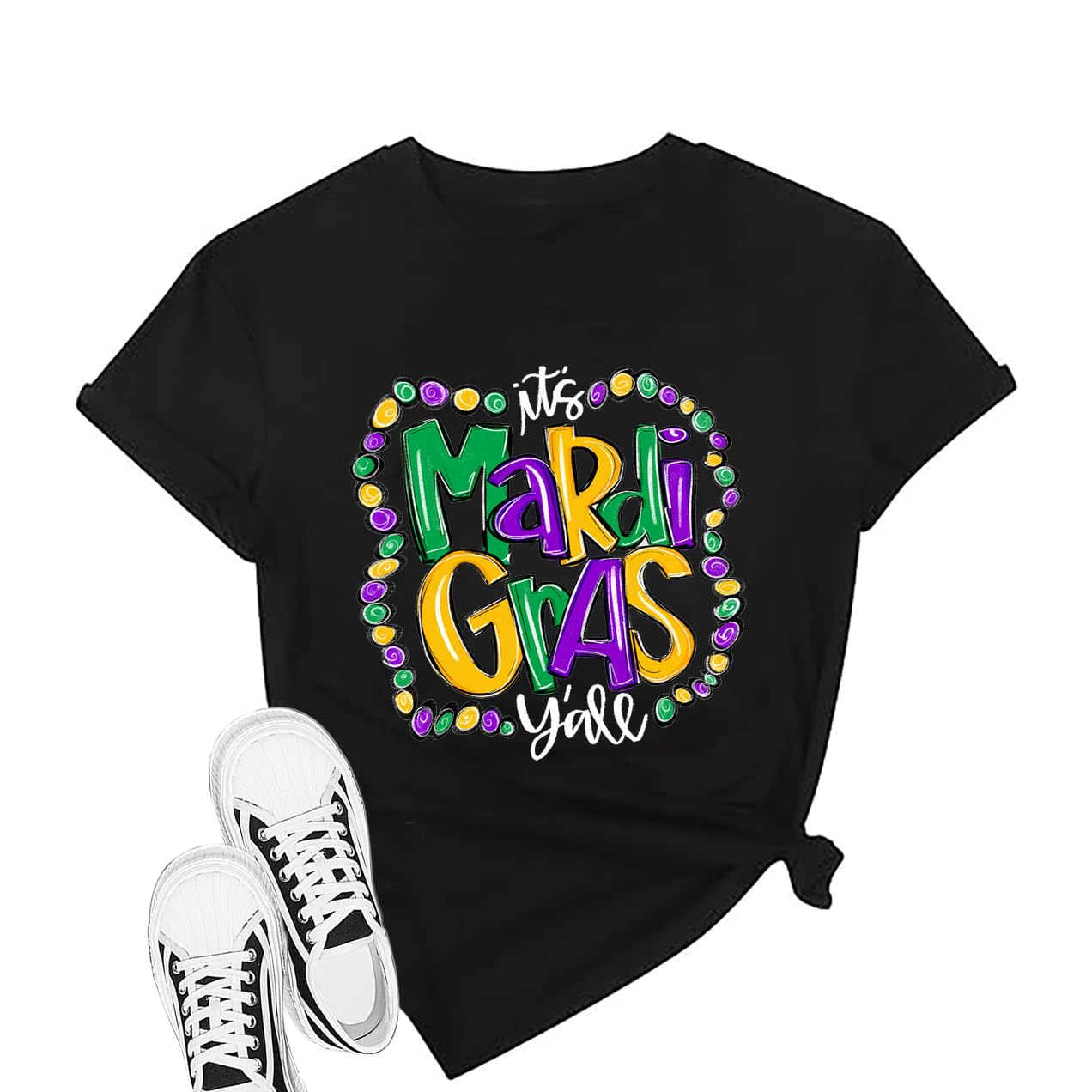 Mardi Gras Shirts Women Carnival Parade Street New Orleans T-Shirt Fat Tuesday Short Sleeve Mask Graphic Funny Top Tee