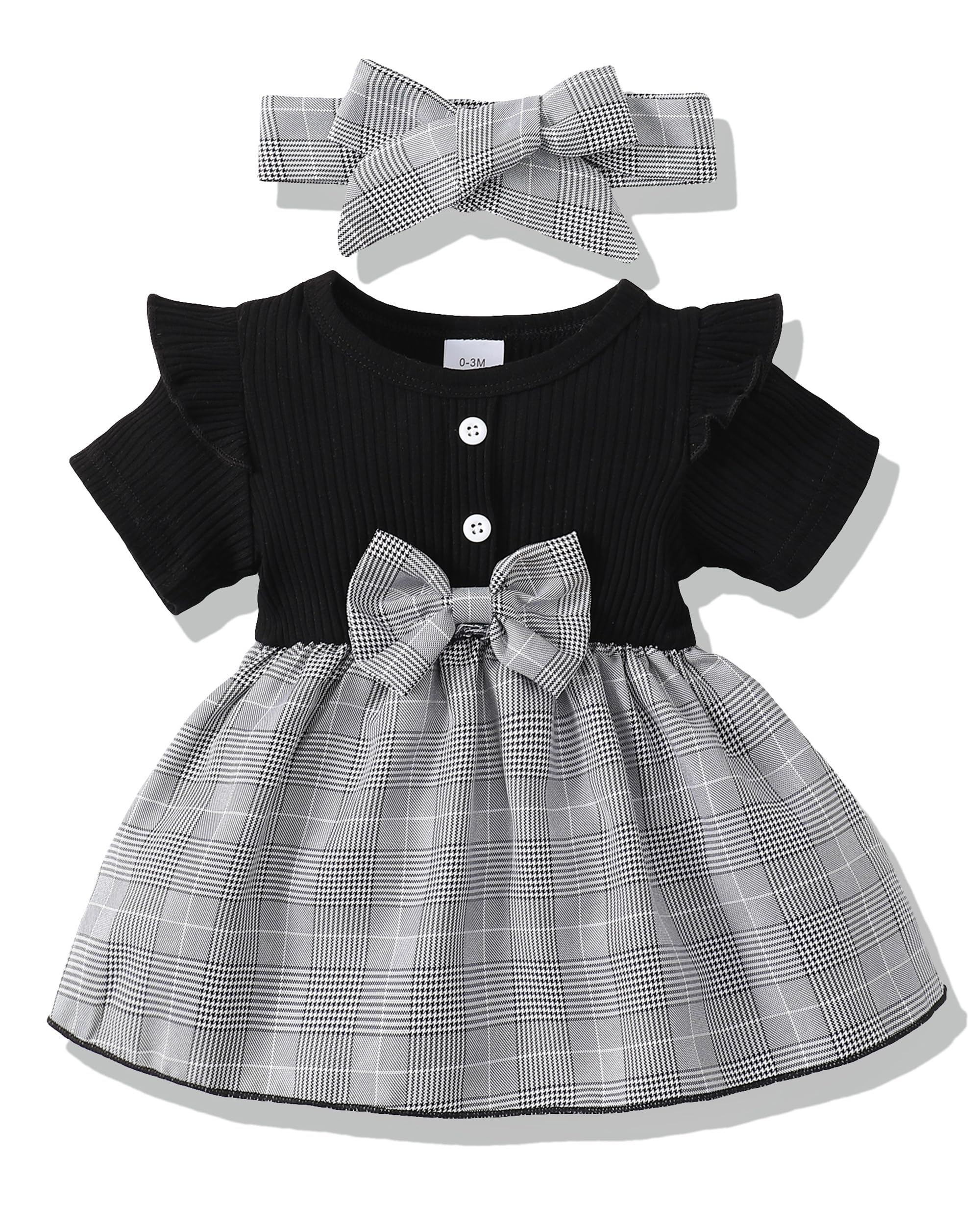 Material: The newborn outfits for girls is made of high quality fabric, safe and comfortable infant girl clothes give your sweetheart a good dressing experience. Fashion Design: Our baby girl outfits is designed with a ribbed plaid dress and cute headband that will make your infant girls look cute.