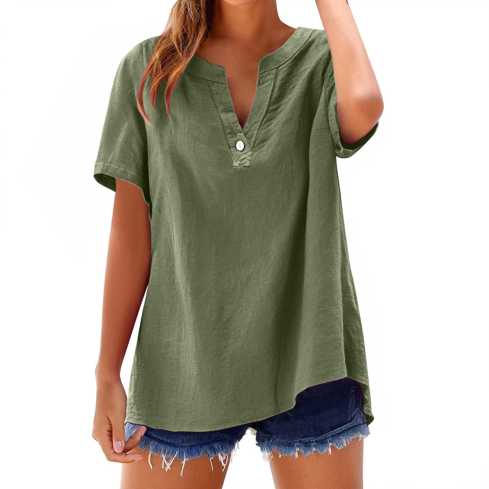 Summer Tops for Women 2025 Casual Cotton Linen Shirts Short Sleeve Solid Color Blouses Loose Work Tops with Pockets