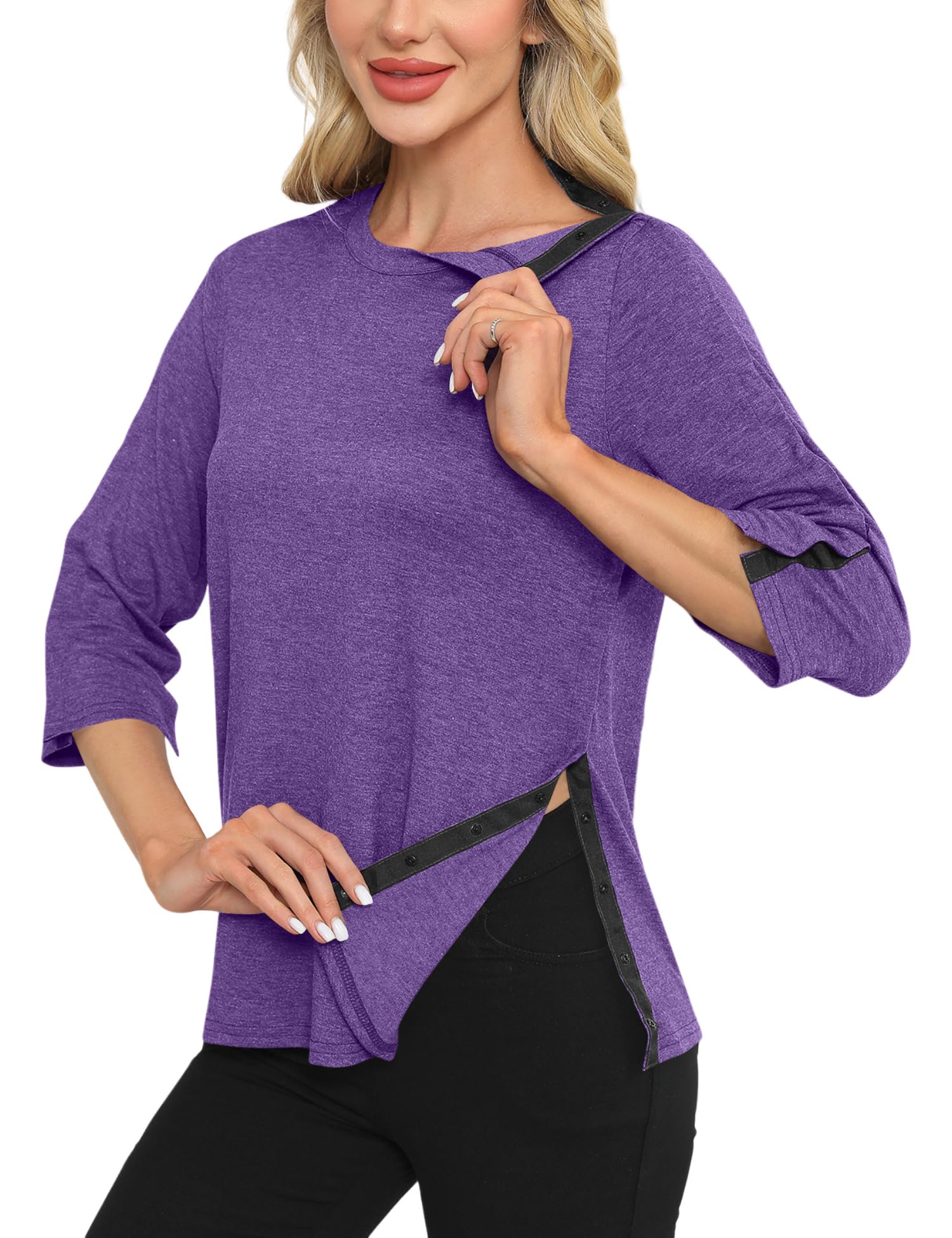 Poriff Women's Full Snap Post Shoulder Surgery Shirts 3/4 Sleeve Chemo Port Tops After Rotator Cuff Adaptive Clothing S - XXL