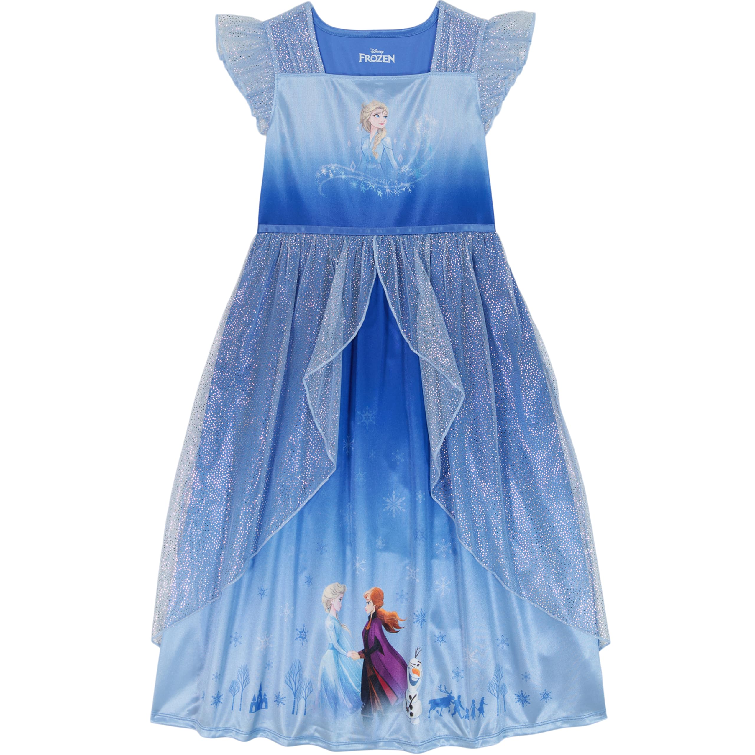 BE A DISNEY PRINCESS: Get ready for some cozy snow-time fun with sisters Elsa and Anna in this cute princess-dress nightgown. Let your dreams take you on exciting adventures through Arendelle! Officially licensed Disney product. FANTASY CLOTHING: This cute princess gown features fancy sleeves and sp