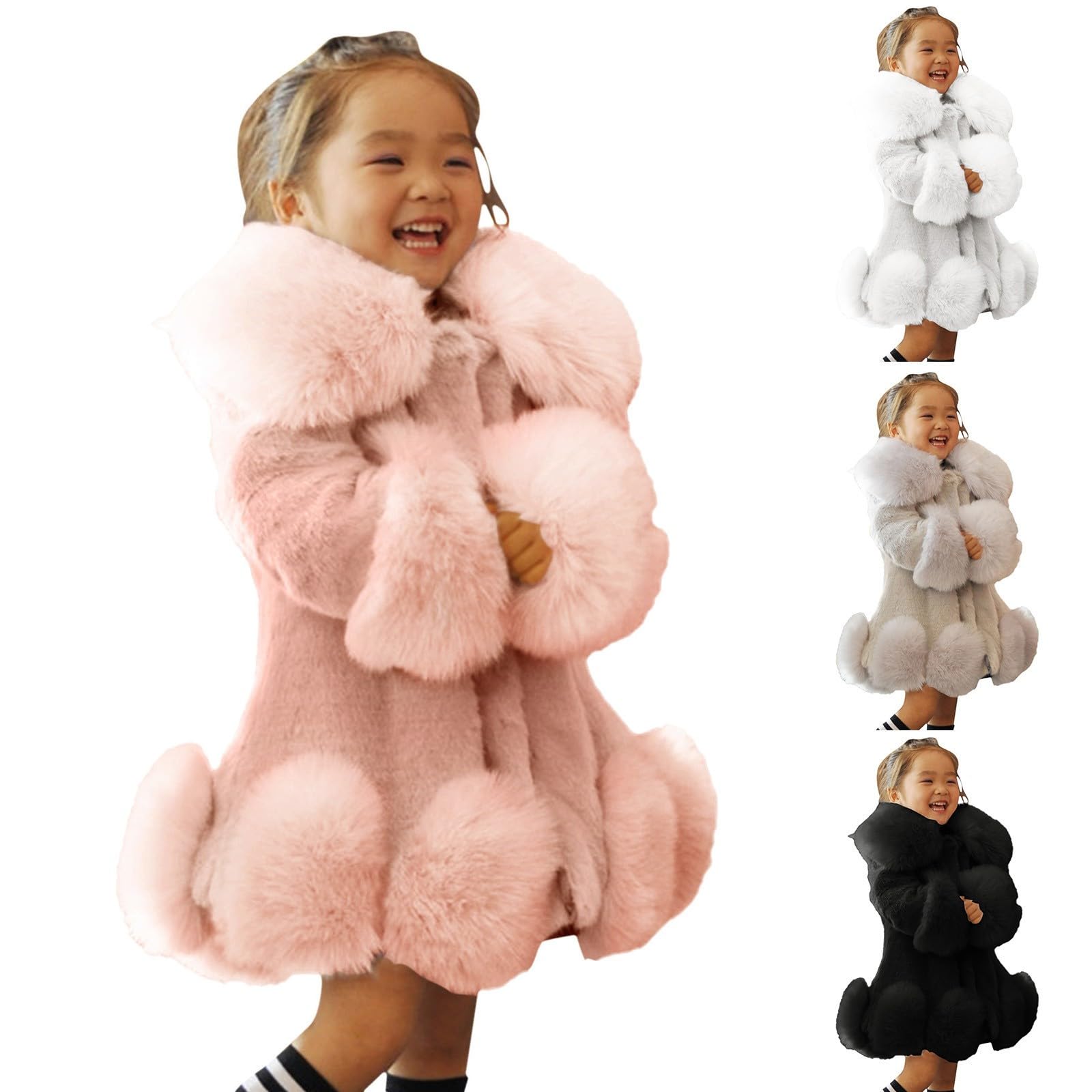 Material: Faux Fur . Toddler Baby Little Girls Fur Outwear Jacket Vest. Age: 1-10 Years Old. faux Fur used on these items. Stylish faux Fur fabric, the fabric feels smooth and soft, has a good permeability, makes your baby feel more comfortable. white Fur coat, girls Fur coat, white faux Fur coat, F