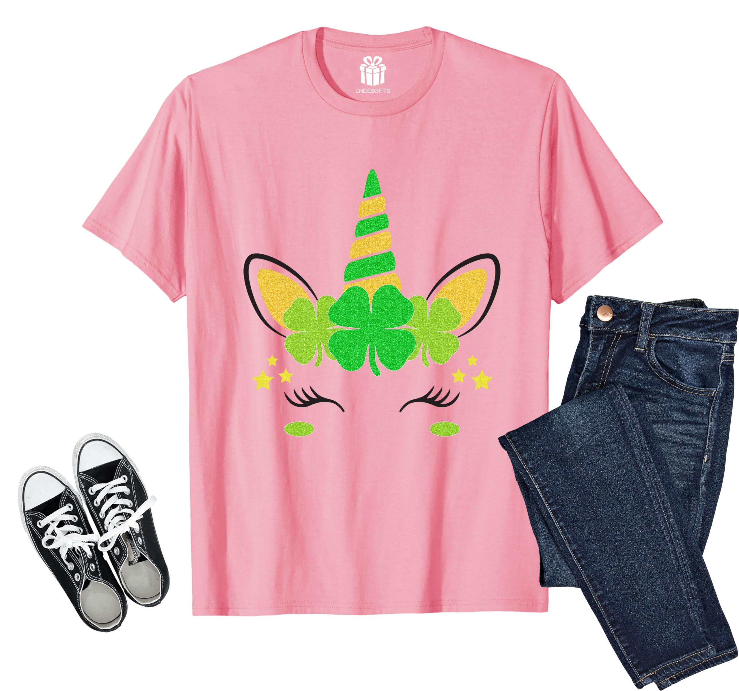 UNIDESGIFTS Unicorn Face St Patricks Day Shirt for Women Teen Girls Kids Toddler Irish Shamrock Lucky Daughter Mom Grandma