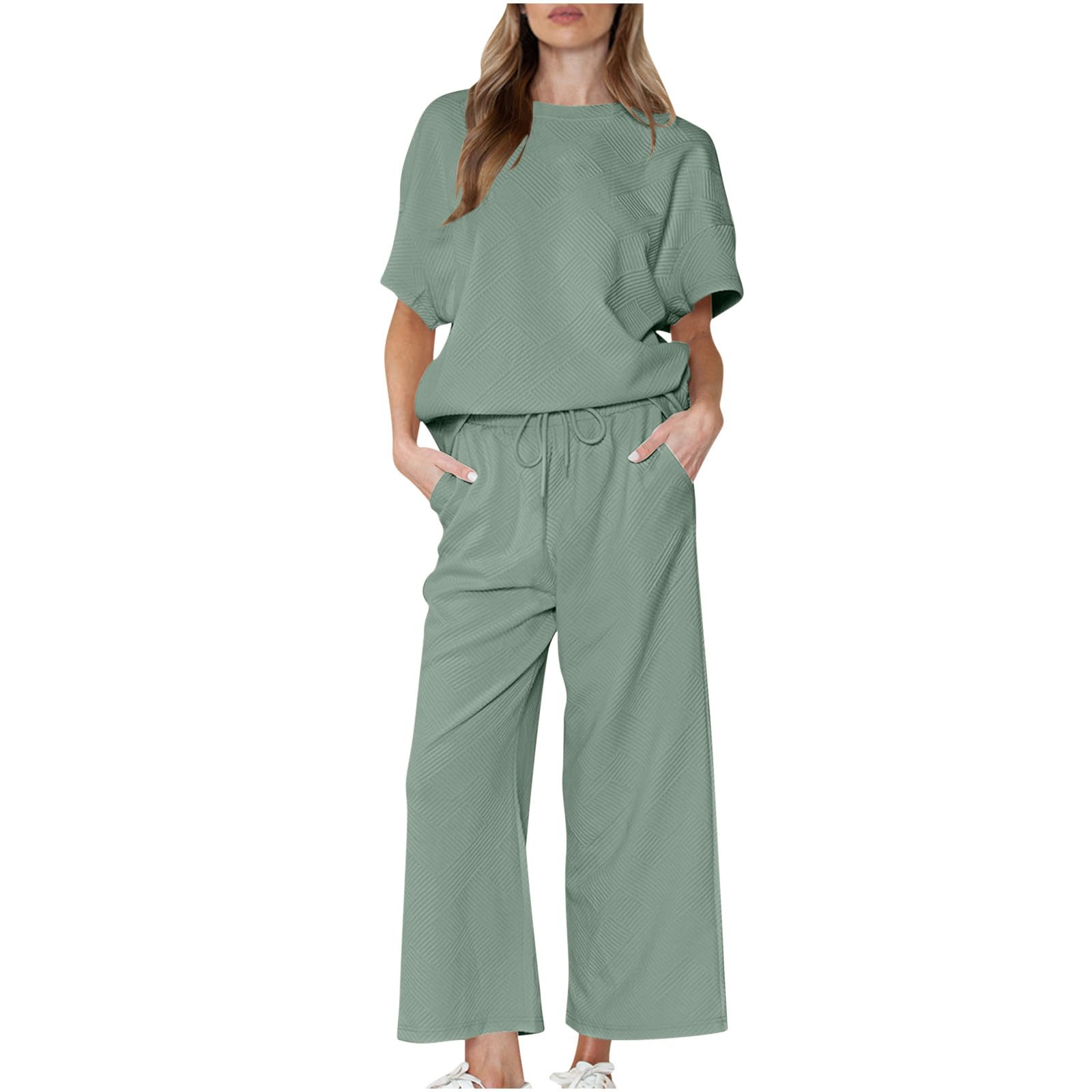 Generic Womens Sweatsuits 2 Piece Sweatsuits Short Sleeve Crewneck Shirt Sweatpant Tracksuit Loose Fit Lounge Set with Pocket