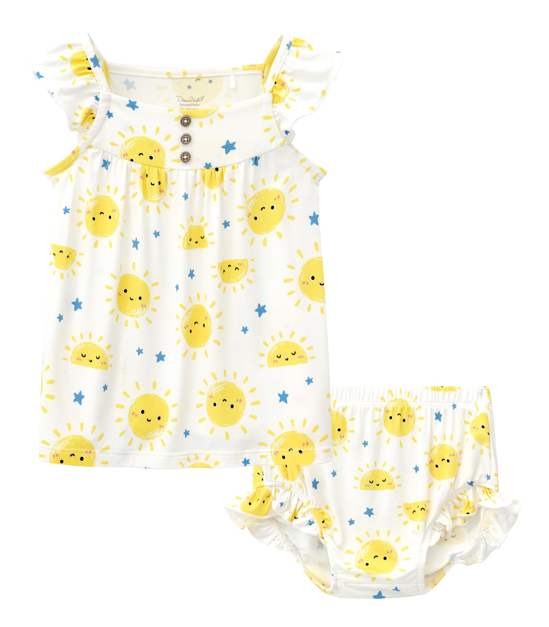 DREAMHALO Baby Girls Outfits Short Sleeve Ruffle Top with Shorts Sets 2 Piece Clothing Set Viscose from Bamboo, 0-24Months