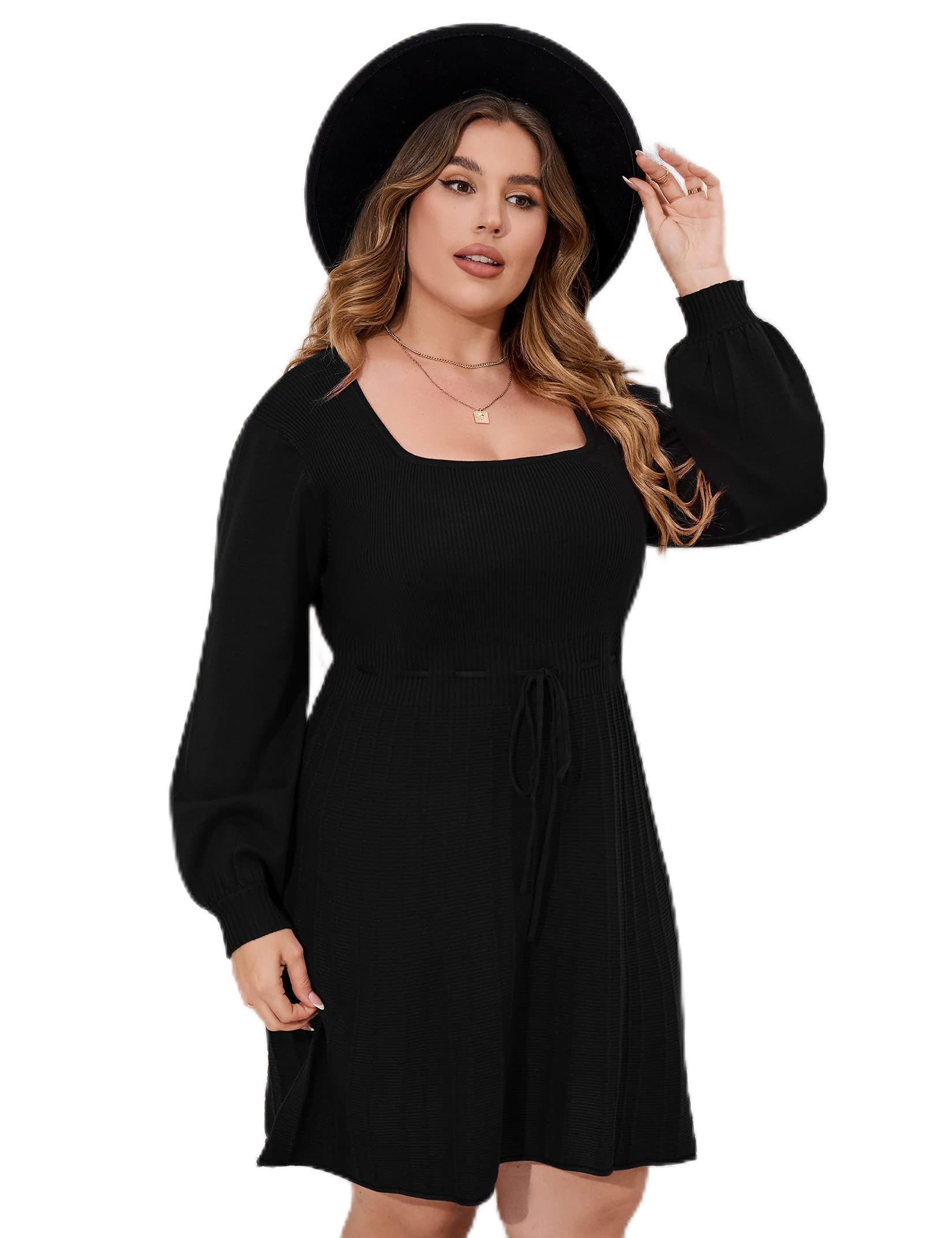 Plus Size Sweater Dress - This 【without belt】, square neck, high waist, rib-knit, plain and simple, casual style plus size sweater dress . The bloomchic dresses for women soft and thick stretch fabric makes it more breathable and comfortable to wear for a lighter and warmer body.christmas dresse