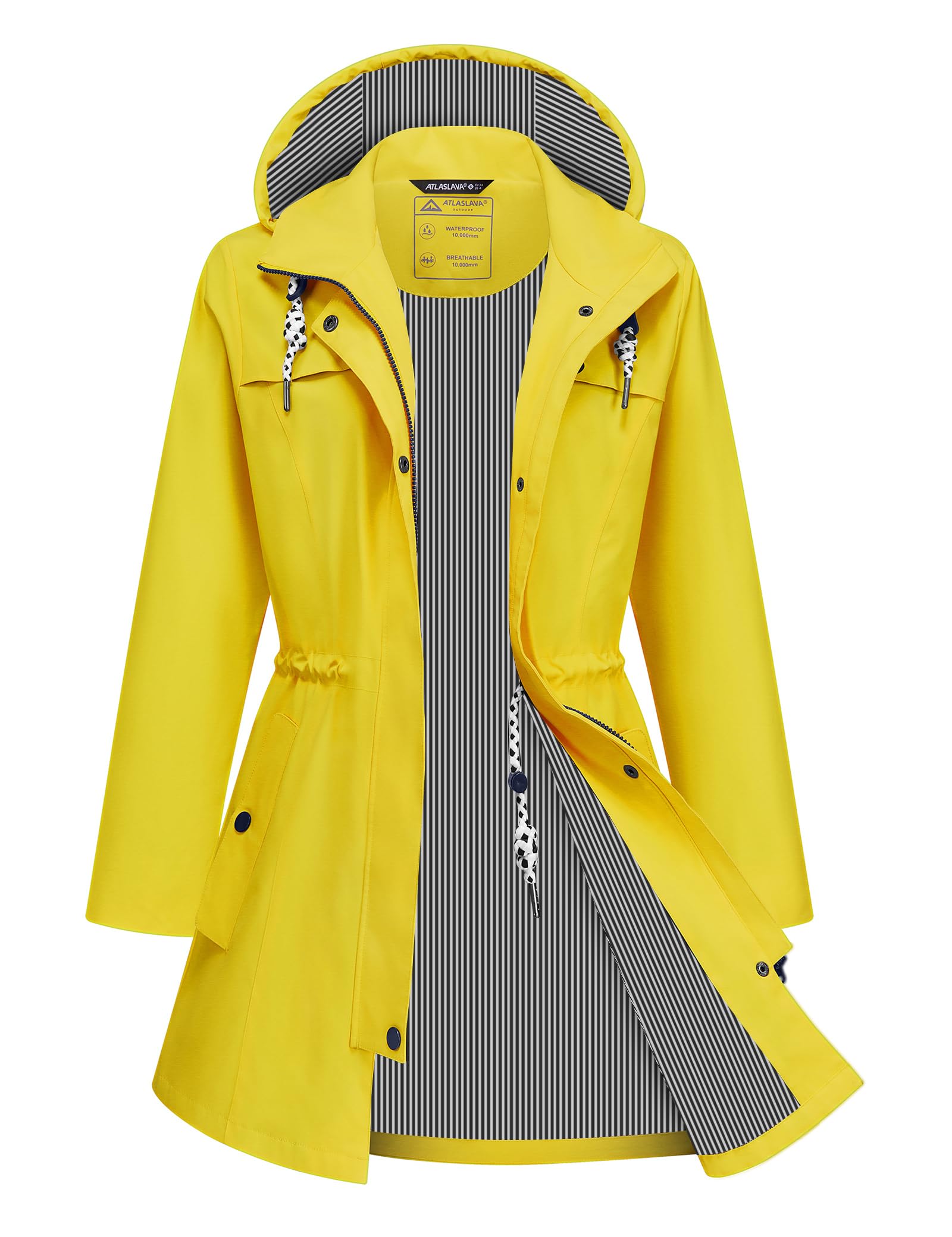 ATLASLAVA Rain Jacket Women Waterproof Long Lightweight Raincoat Hooded Windbreaker Outdoor Trench Coat S-3XL