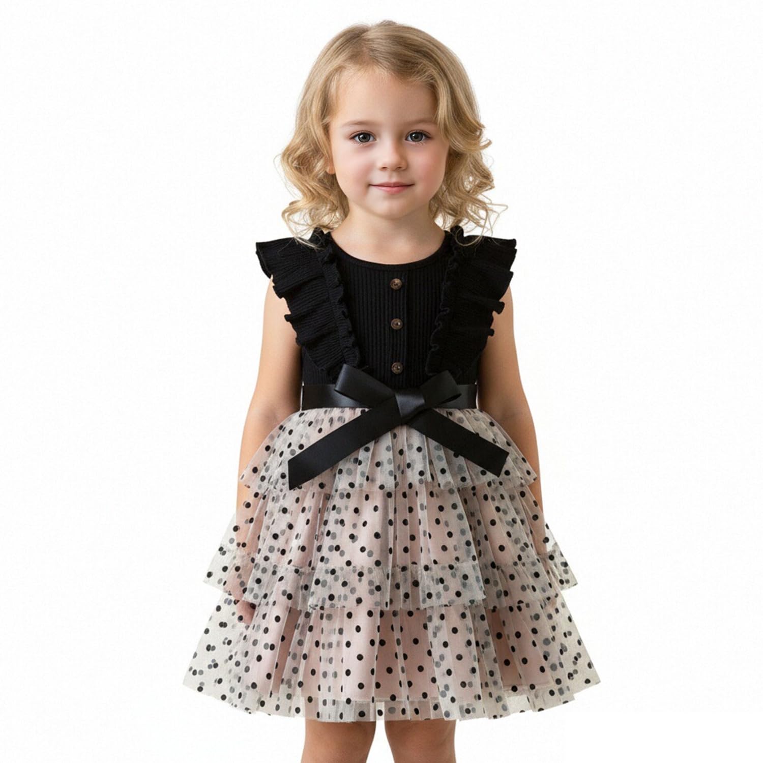 NNJXD Princess Girl Casual Dress Polka Dots Toddler Layered Tulle Kids Knit Clothing