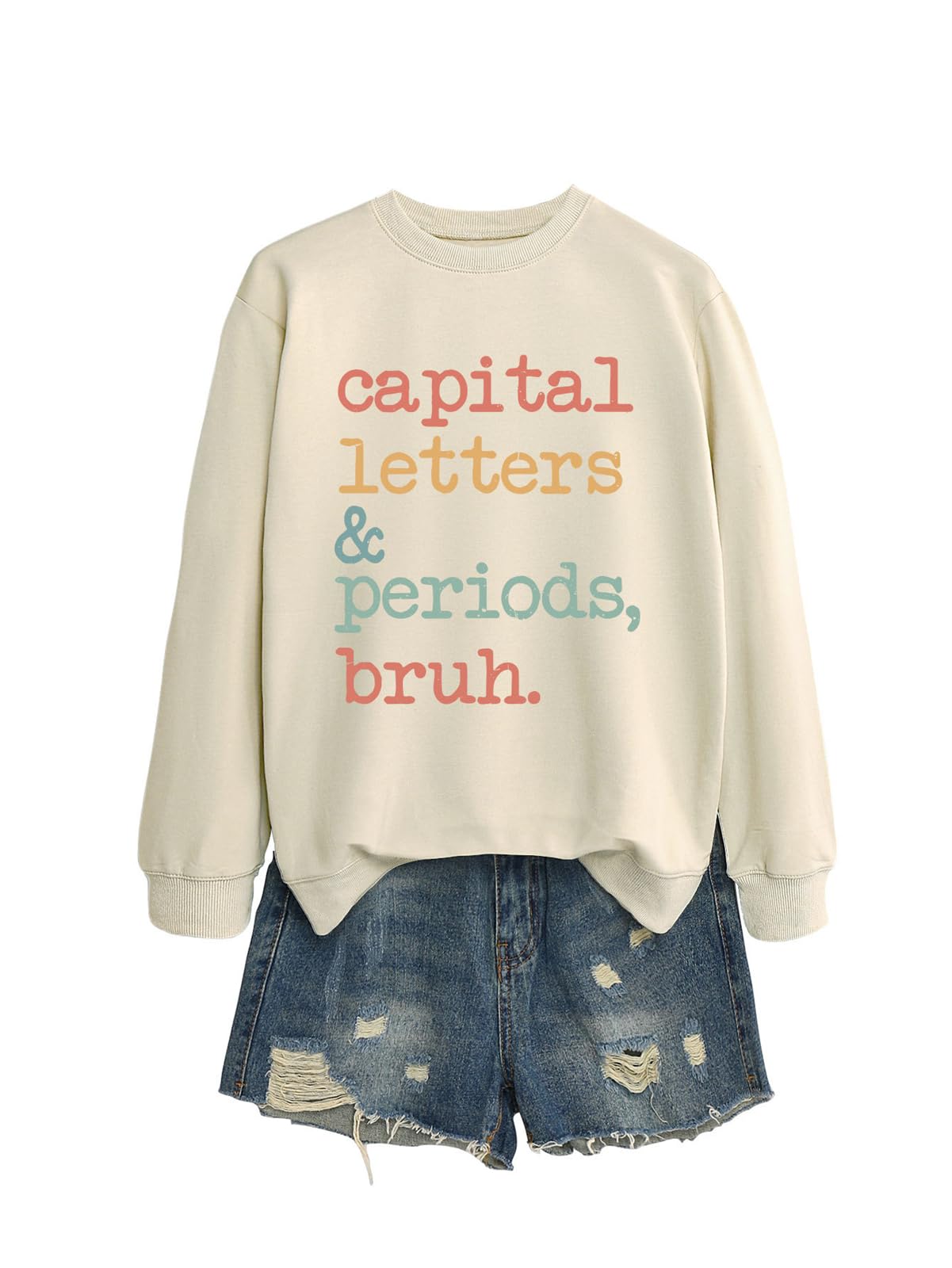 Teacher Sweatshirt for Women Capital Letters Funny Letter Printed English Teacher Shirts Casual Long Sleeve Pullovers