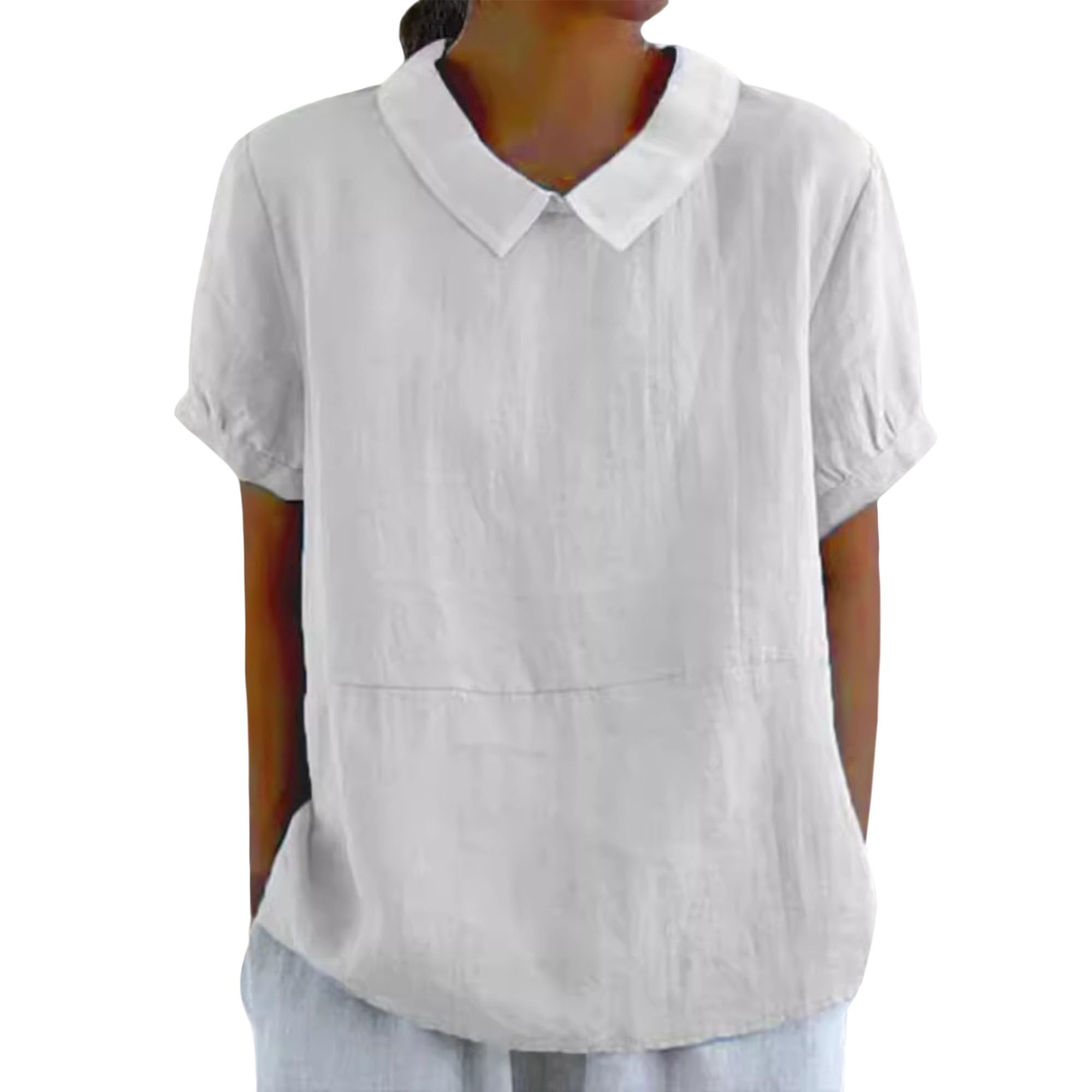 YZCX Women Summer Cotton Linen Tops Casual Short Sleeve Crewneck Collared T Shirt Loose Solid Dressy Blouse Tunic 2025