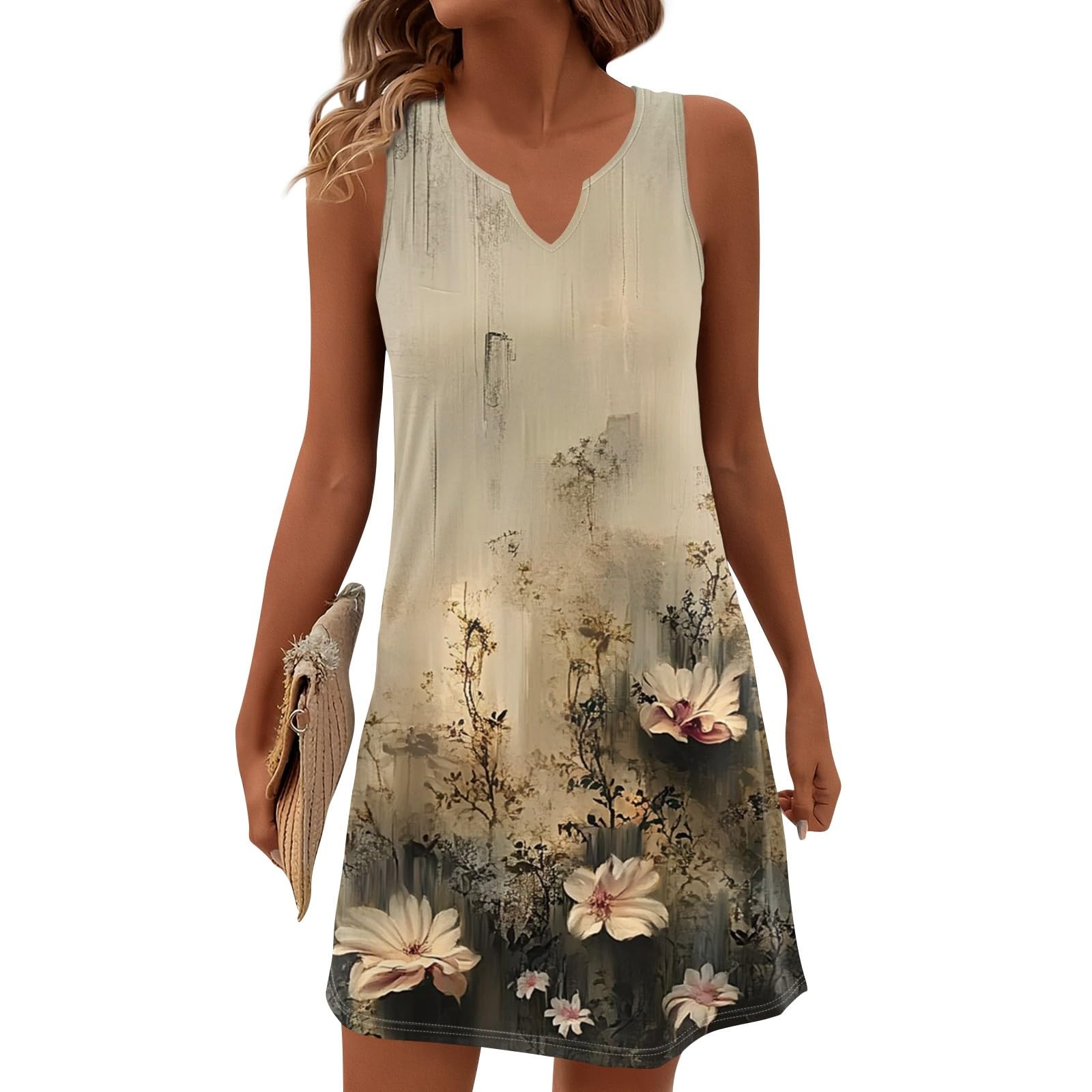 Summer Dresses for Women V-Neck Sundresses Sleeveless Loose Sleep Dress Beach Tank Dress Floral Casual T Shirt Dresses