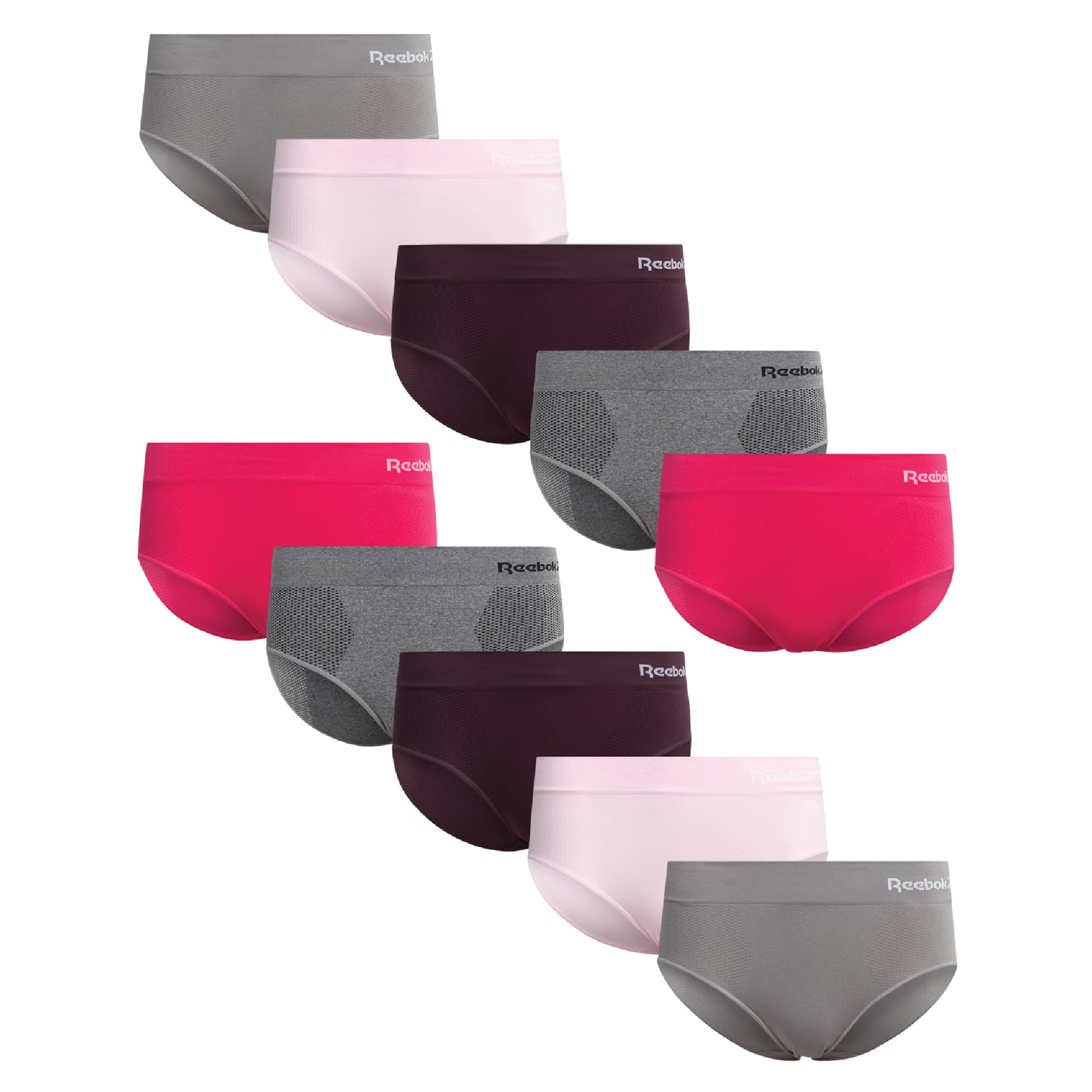 Reebok Hipster Panties for Women - 10 Pack Stretch Performance Seamless Underwear with Relaxed Tag-Free Waistband (S-XL)