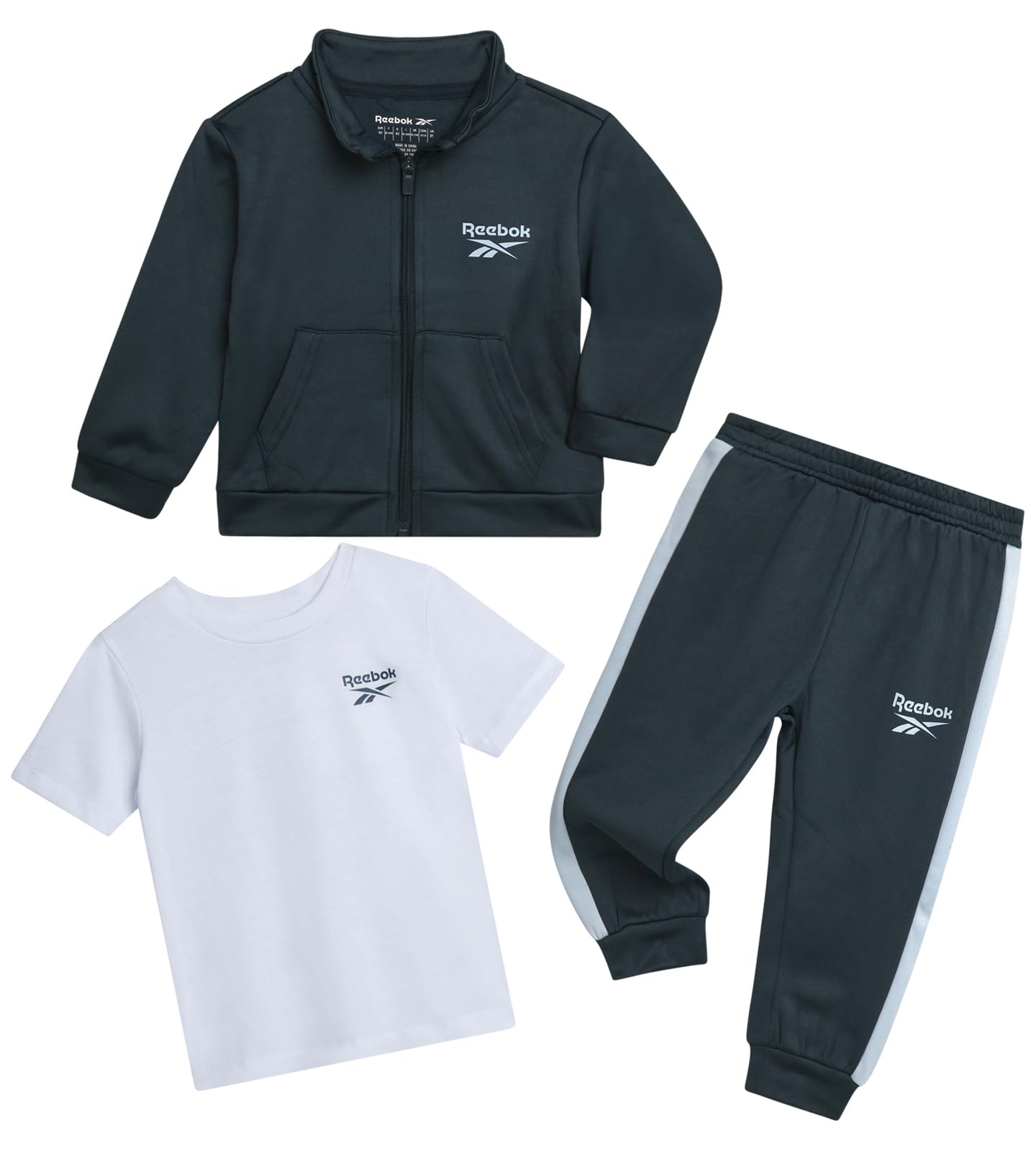 Reebok Baby Boy Pants Set - 3 Piece Athletic Tricot Track Jacket Short Sleeve Tee & Joggers Infant Toddler & Boys Tracksuit