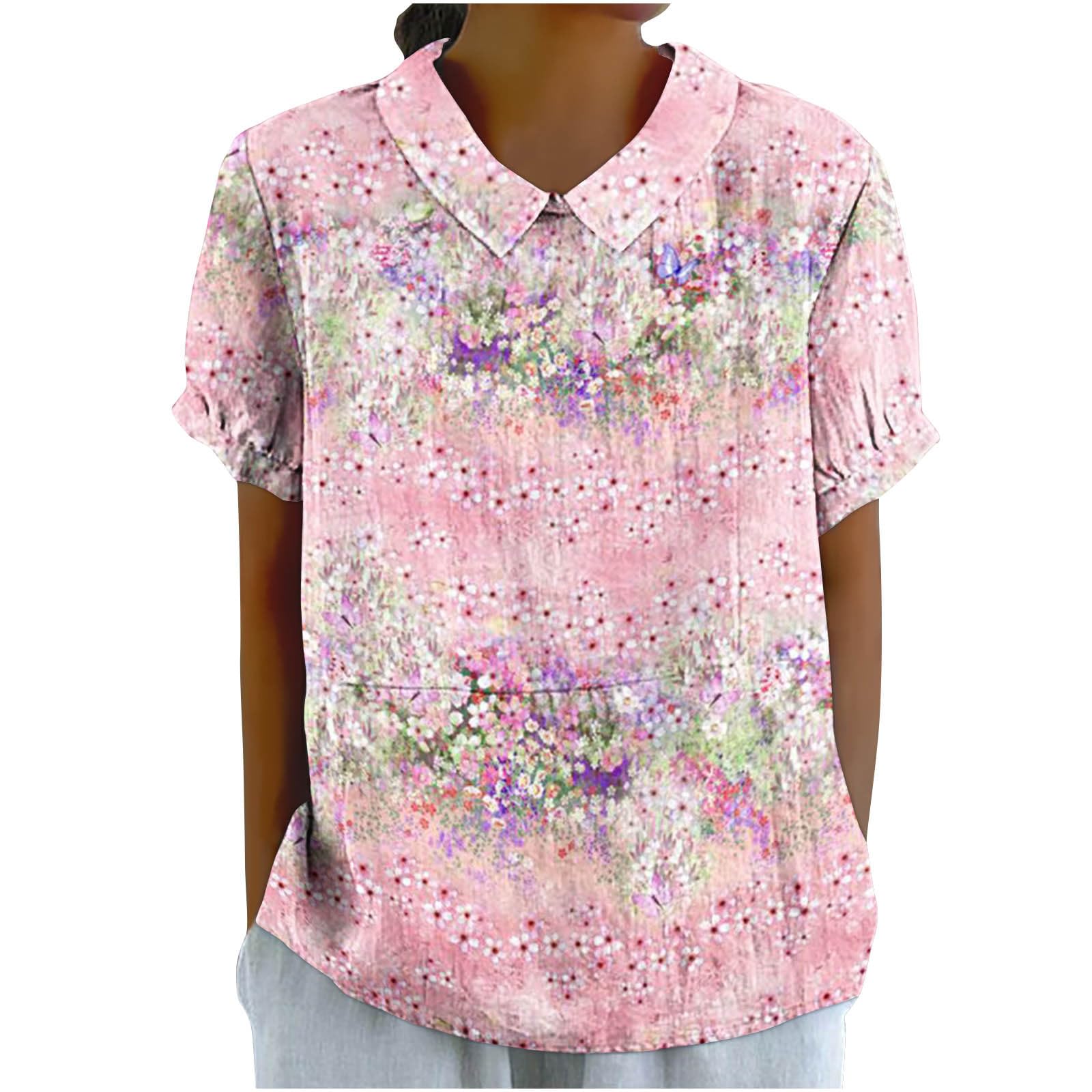 Women's Preppy Collared T-Shirts for 2025 Summer Floral Graphic Chic Tee Blouses Short Sleeve Plus Size Shirts