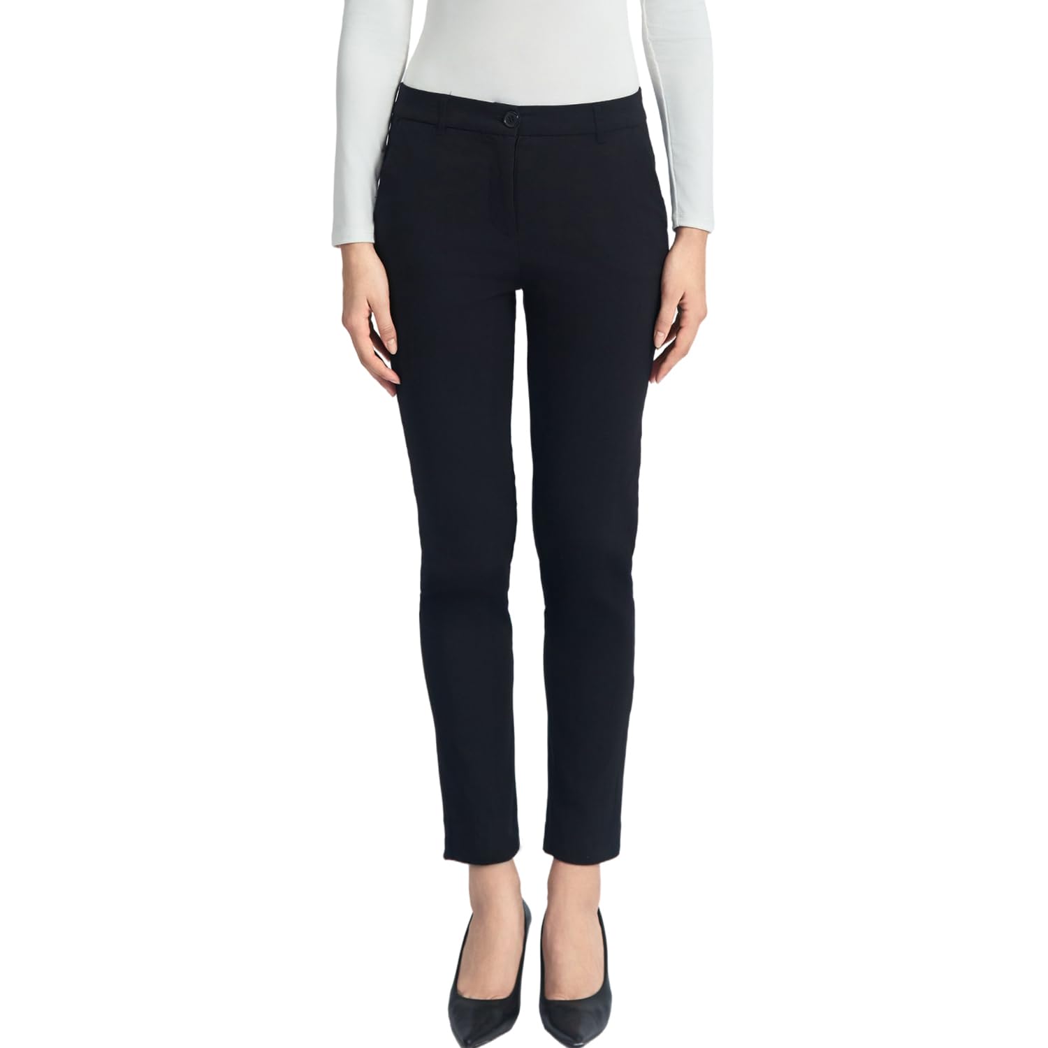 SANDY & SID Cropped Pants for Women Petite Small Size Mid Waist Slim Fit Work Pants Stretch Trousers Slack Casual Office Wear
