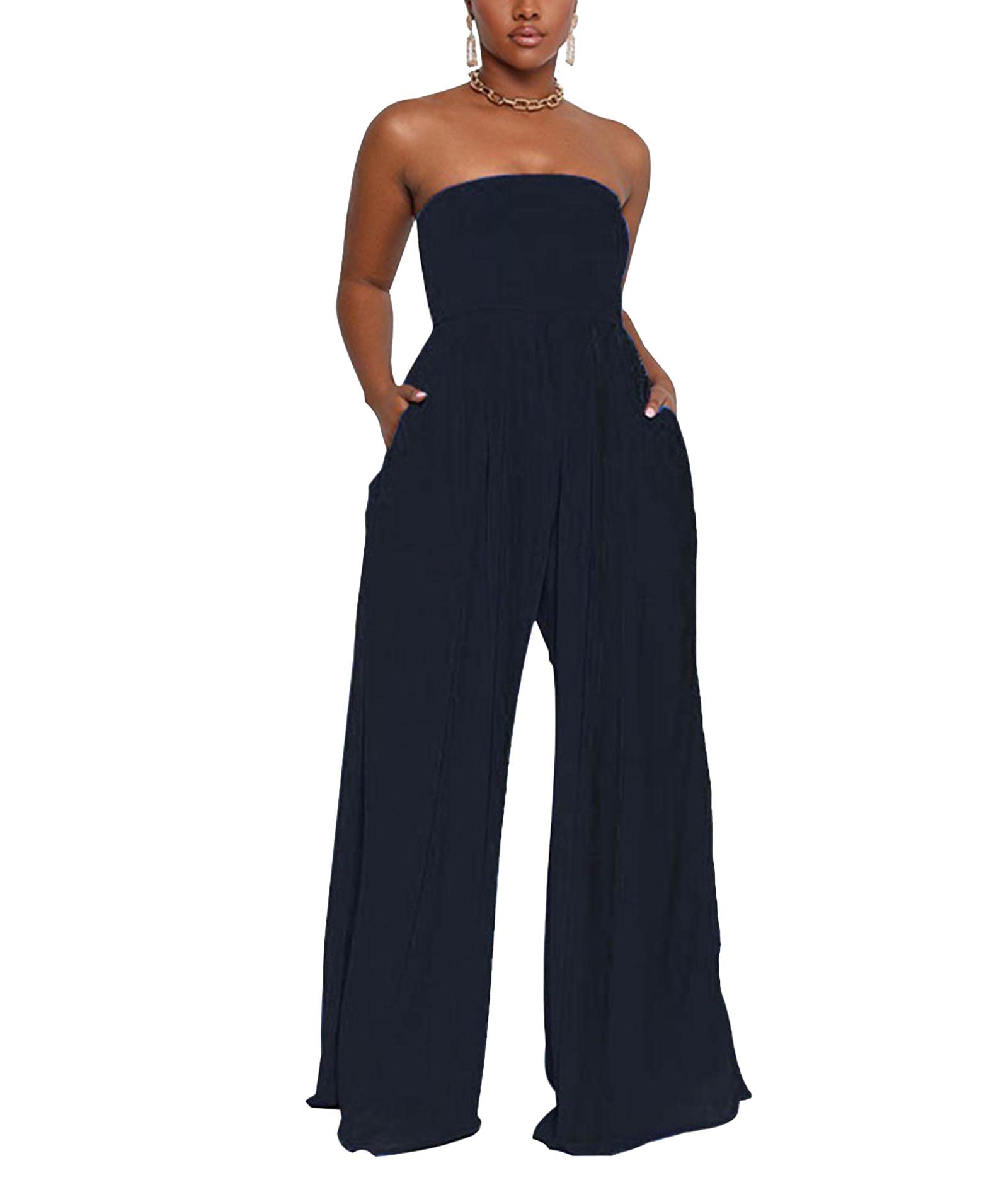 ★Material Type:Polyester.Casual to wear. ★Features&Design:Tube Top Jumpsuit,Smocked,Sleeveless,Strapless,Off Shoulder,Solid Color,Wide Leg,Loose Fits,Full Legnth Long Pants. ★Occasions:Suitable for clubs, nightclubs, parties, nightlife, club clothing, special occasions, cocktails, evening wear