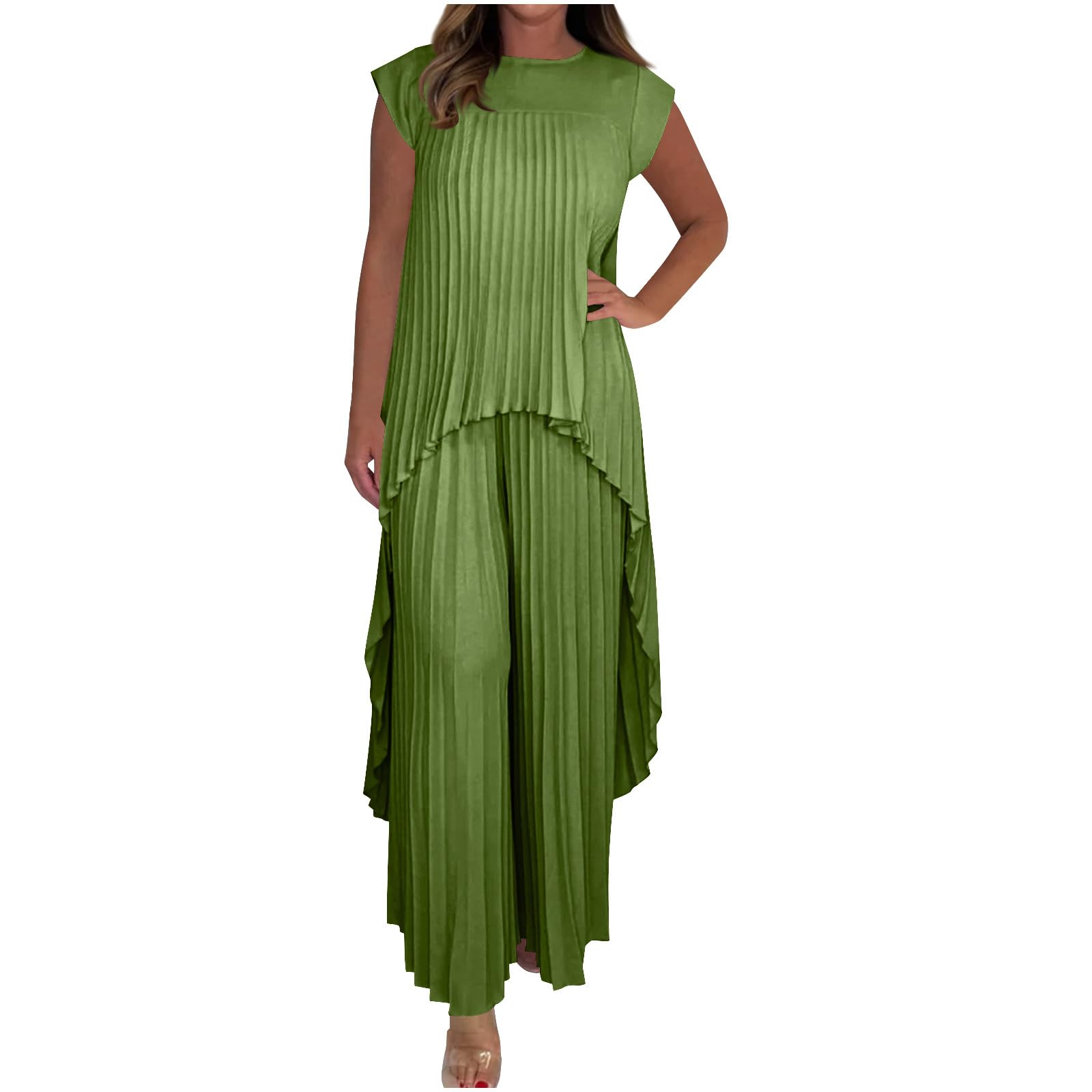 Lounge Sets for Women 2 Piece Cute Cap Sleeve Crew Neck Tops and Pleated Wide Leg Pants Set Casual Loose Sleepwear