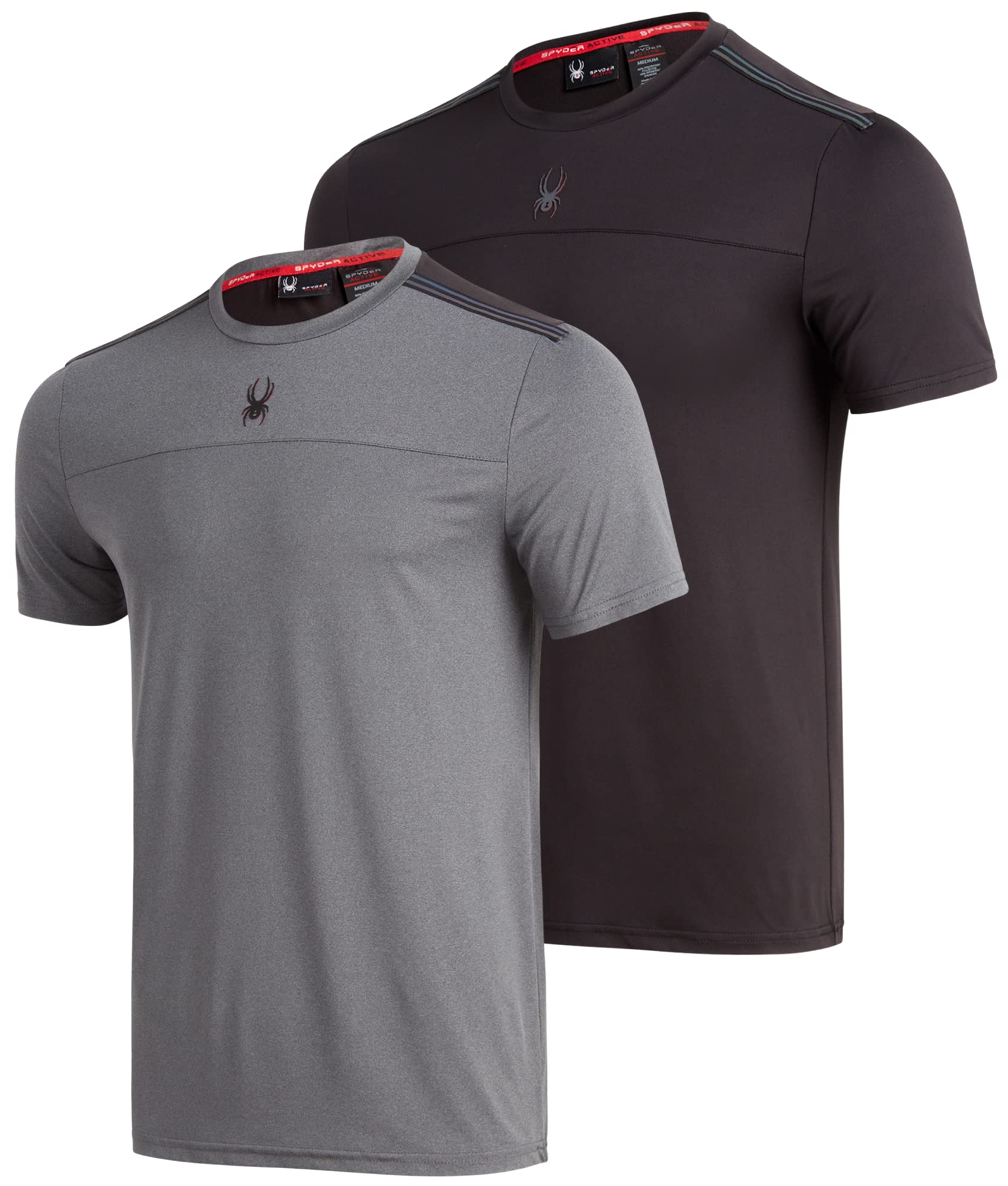 Spyder Mens Athletic Shirts - 2 Pack Performance Stretch Short Sleeve Dri Fit Shirts for Men - Gym Workout Fitness Clothing