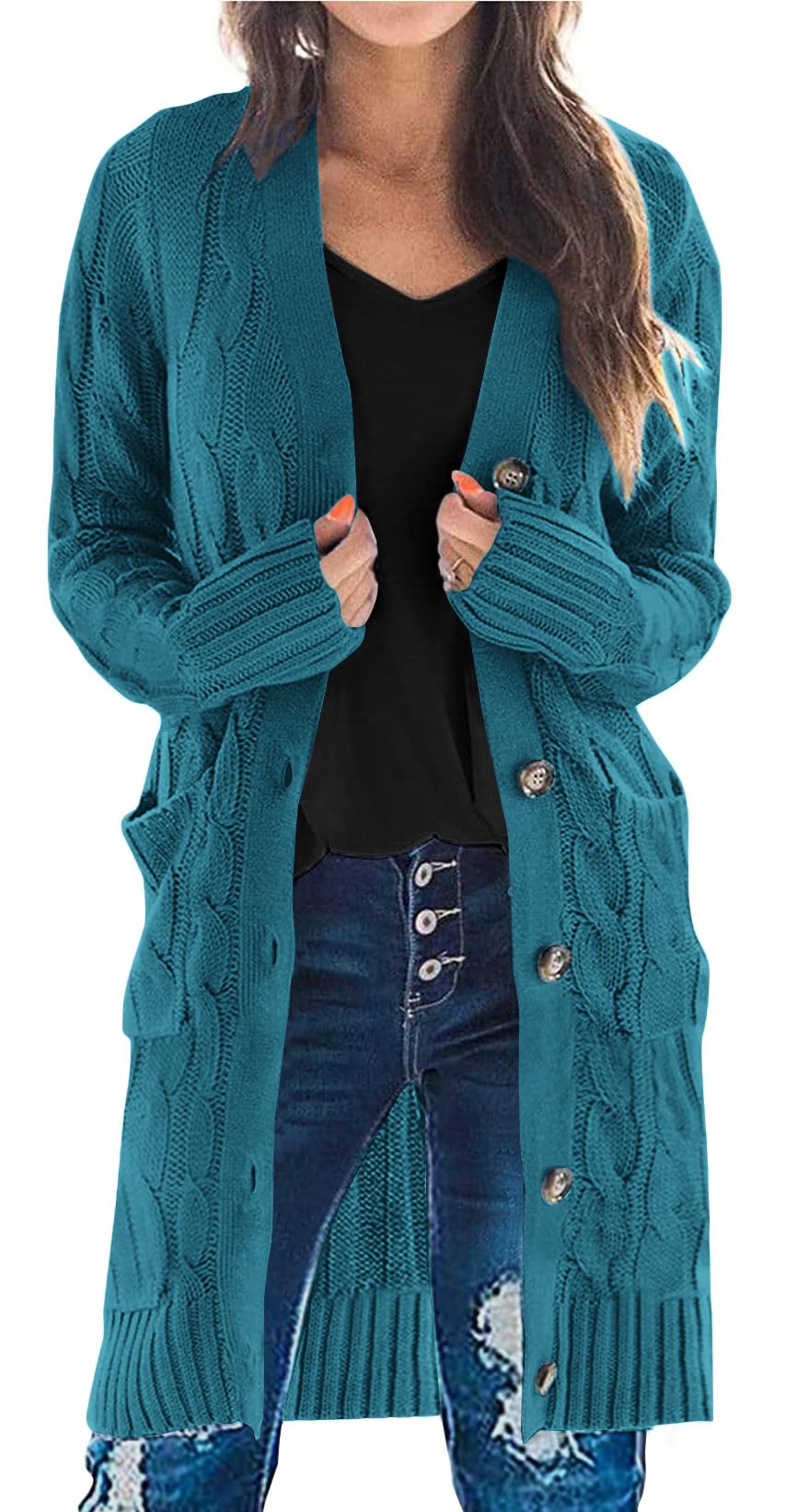 PRETTYGARDEN Long Sleeve Cable Knit Long Cardigan for Women 2026 Spring Winter Chunky Open Front Button Sweaters with Pockets