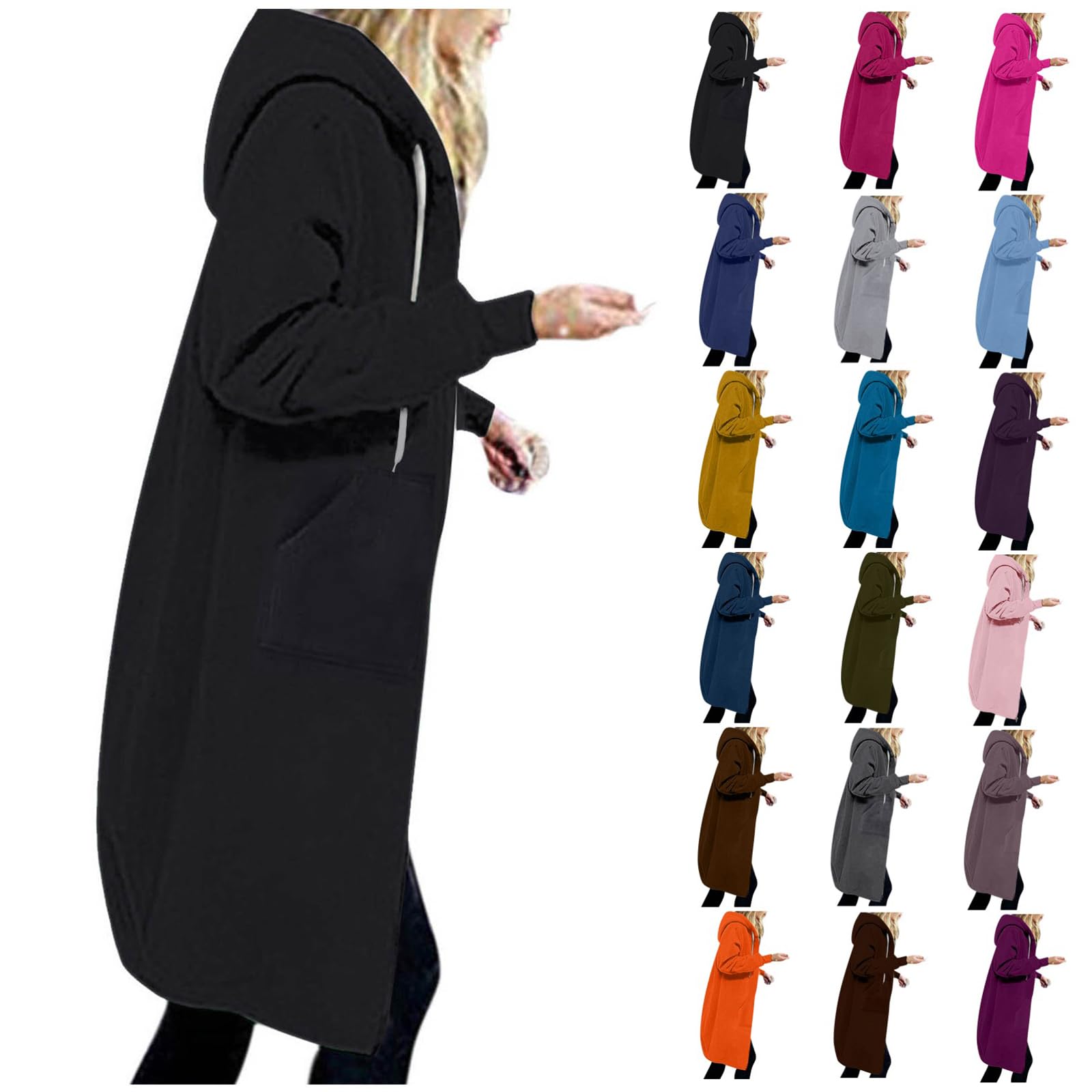 Tapanet Womens Long Sweatshirts Oversized Zip Up Hoodies Knee length Long Fleece Tunic Sweatshirts Hoodie Fall Jackets Coats