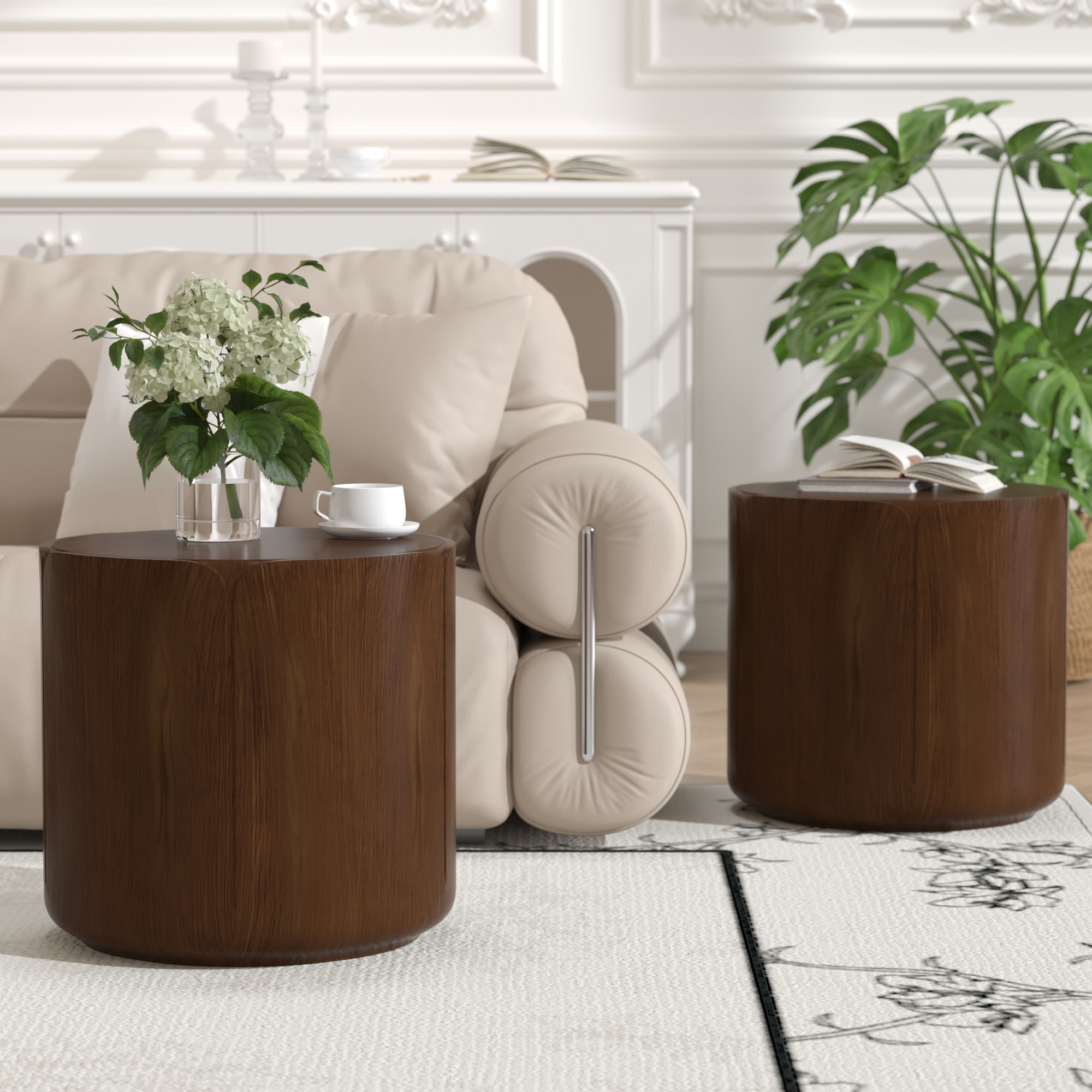 Round Outdoor Indoor Side Table Wood Grain Patio Garden Stool Coffee Tables Sofa End Tables Sofa Tables for Patio Living Room