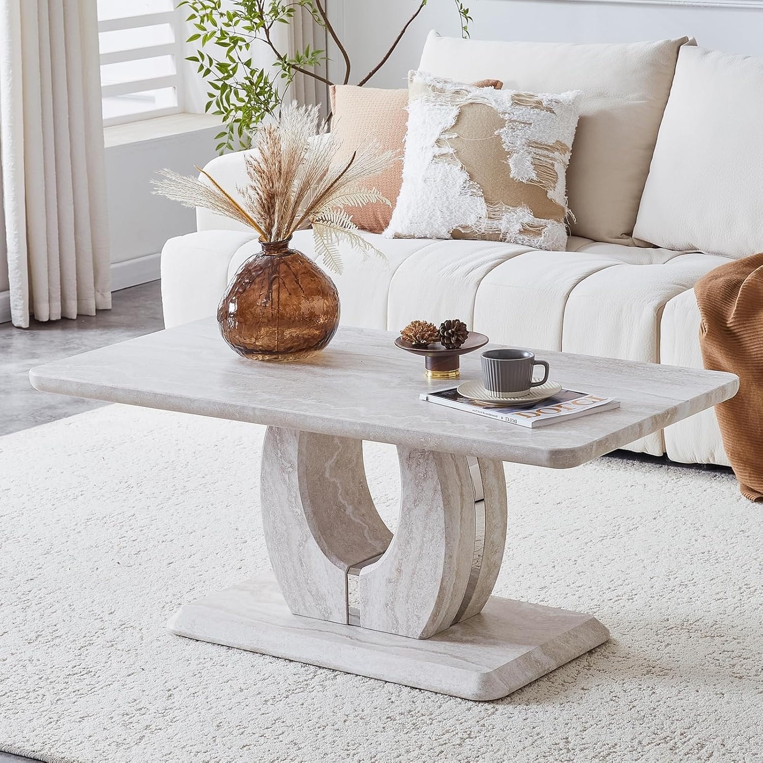 This goose egg-shaped coffee table is made up of top-quality material, top marble with microfiber leather. This natural coffee table is solid, stable, durable, and looks elegant.