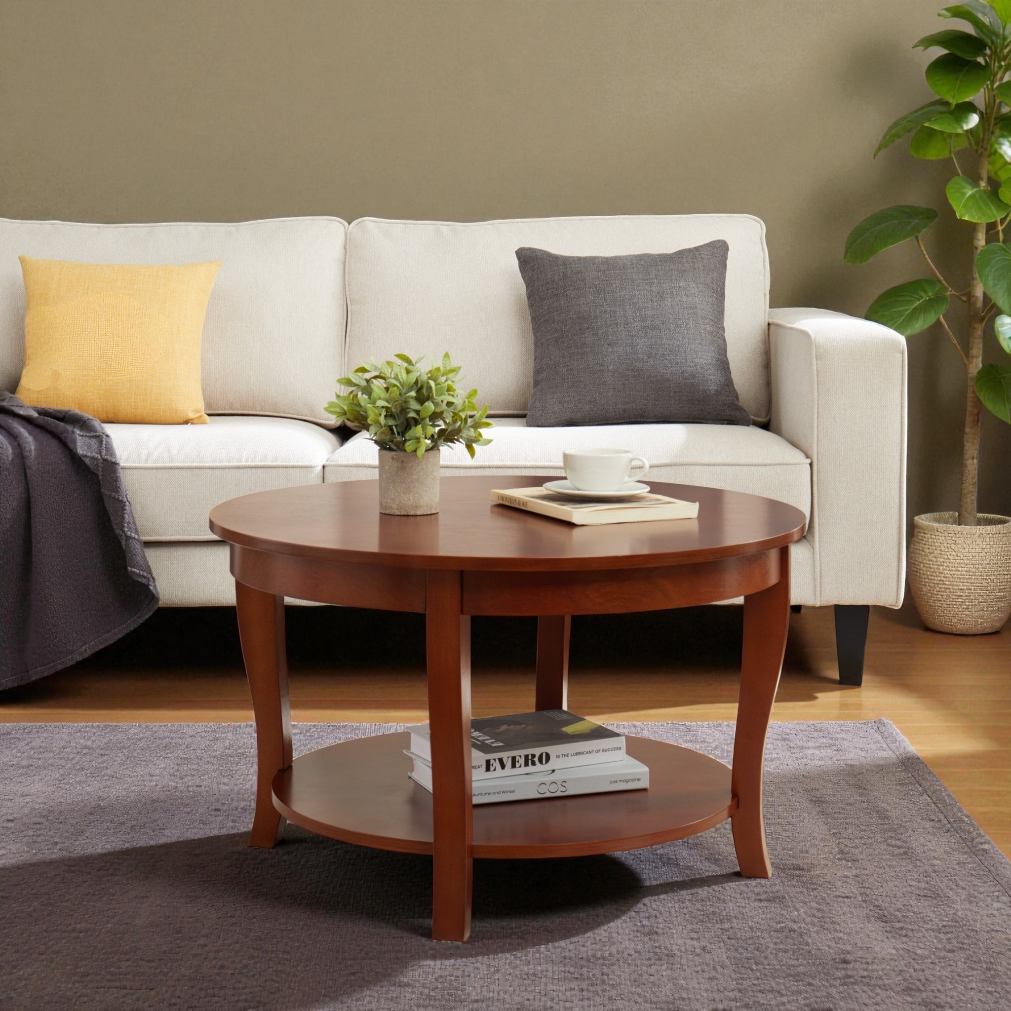 Product Overview Add warmth, charm, and practicality to your living space with this 30"" round coffee table. Designed for both style and function, this center table is the perfect spot for enjoying coffee, displaying décor, or relaxing with a book.