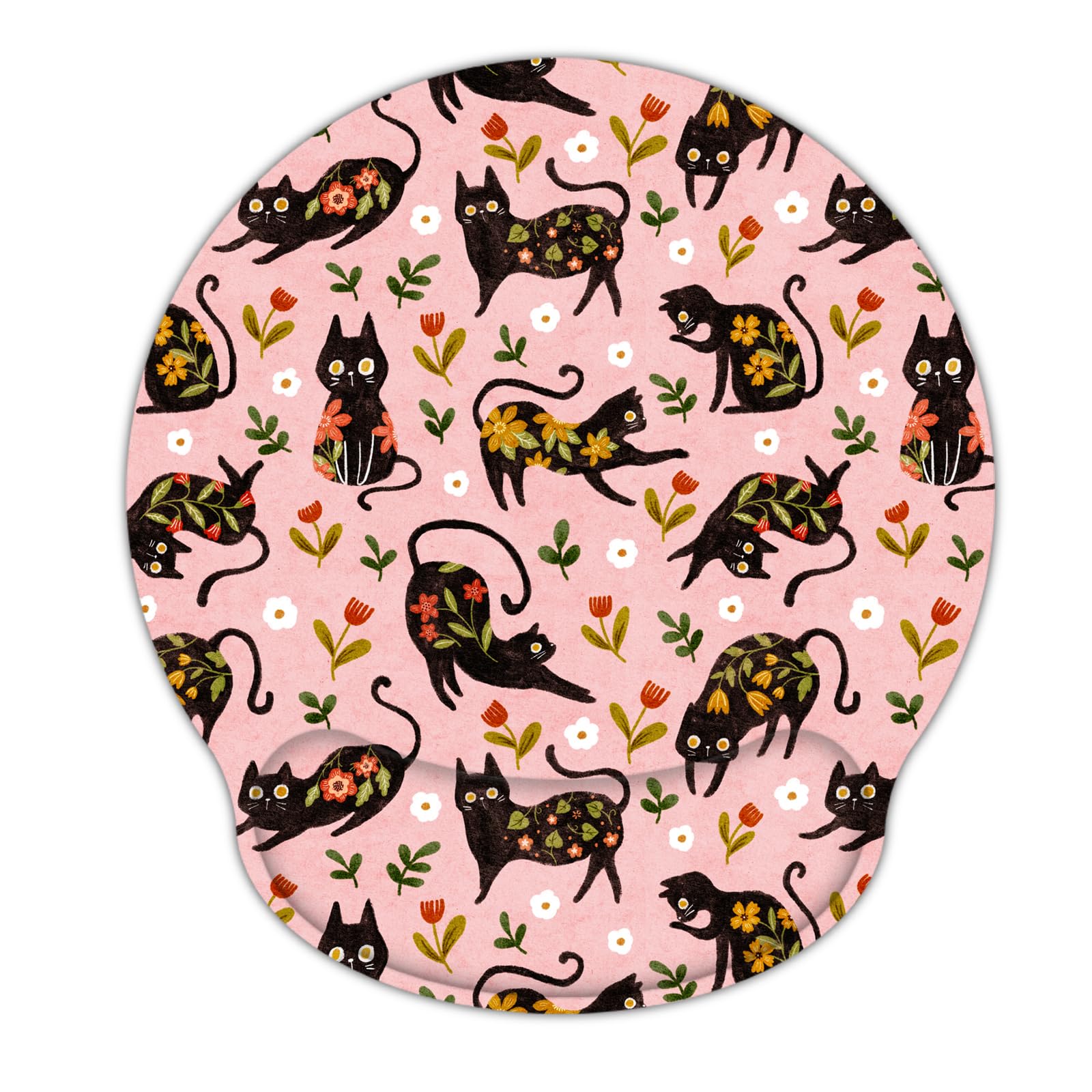 RICHEN Ergonomic Mouse Pad with Wrist Support,Non-Slip Rubber Base for Computer Laptop & Mac,Lightweight Rest for Home,Office & Travel (Flowers Cats)