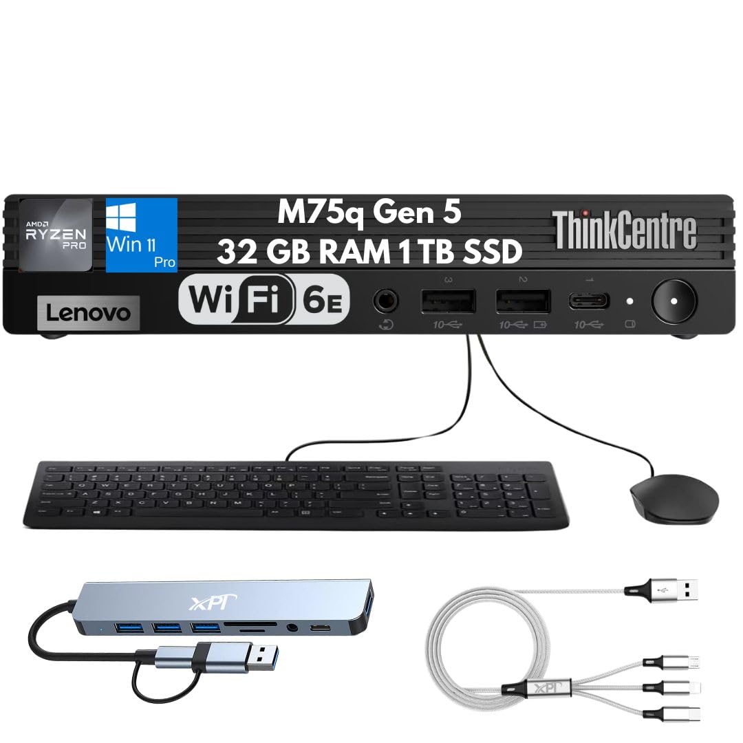 Lenovo ThinkCentre M75q Gen 5 Mini Tiny Business Desktop 2026, AMD Ryzen 7 PRO 8700GE (Beats 8650GE), 32GB DDR5 RAM, 1TB PCIe SSD, Wi-Fi 6E, Ethernet,