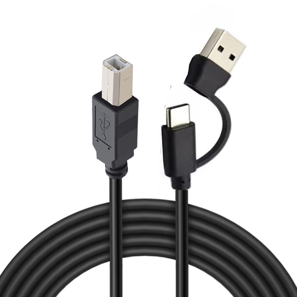GuangMaoBo Type C+ USB3.1A to Printer Cable,USB3.1 C USB 2.0A Male to USB 2.0B Type-B Male OTG Cable for Phone Scanner Electronic Piano and Electro